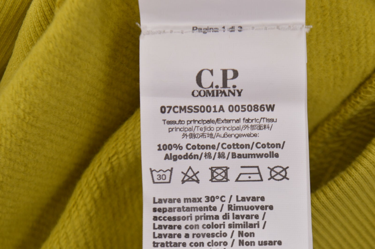 C.P. Company NWT Crew Neck Sweat Shirt Size L In Solid Yellow Cotton Logo Chest
