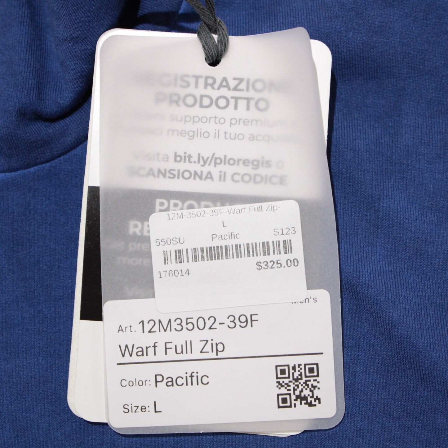 Ploumanac'h NWT Warf Full Zip Sweatshirt Size L in Pacific Blue Cotton Blend