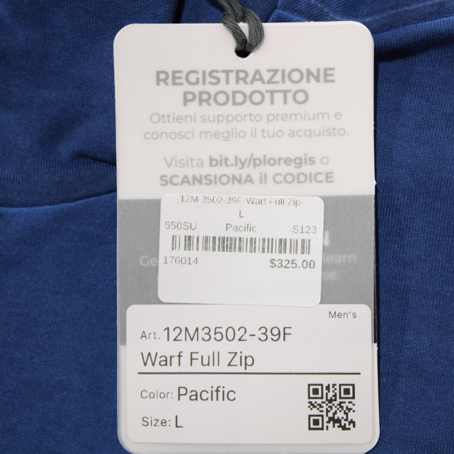 Ploumanac'h NWT Warf Full Zip Sweatshirt Size Large in Pacific Blue Cotton Blend