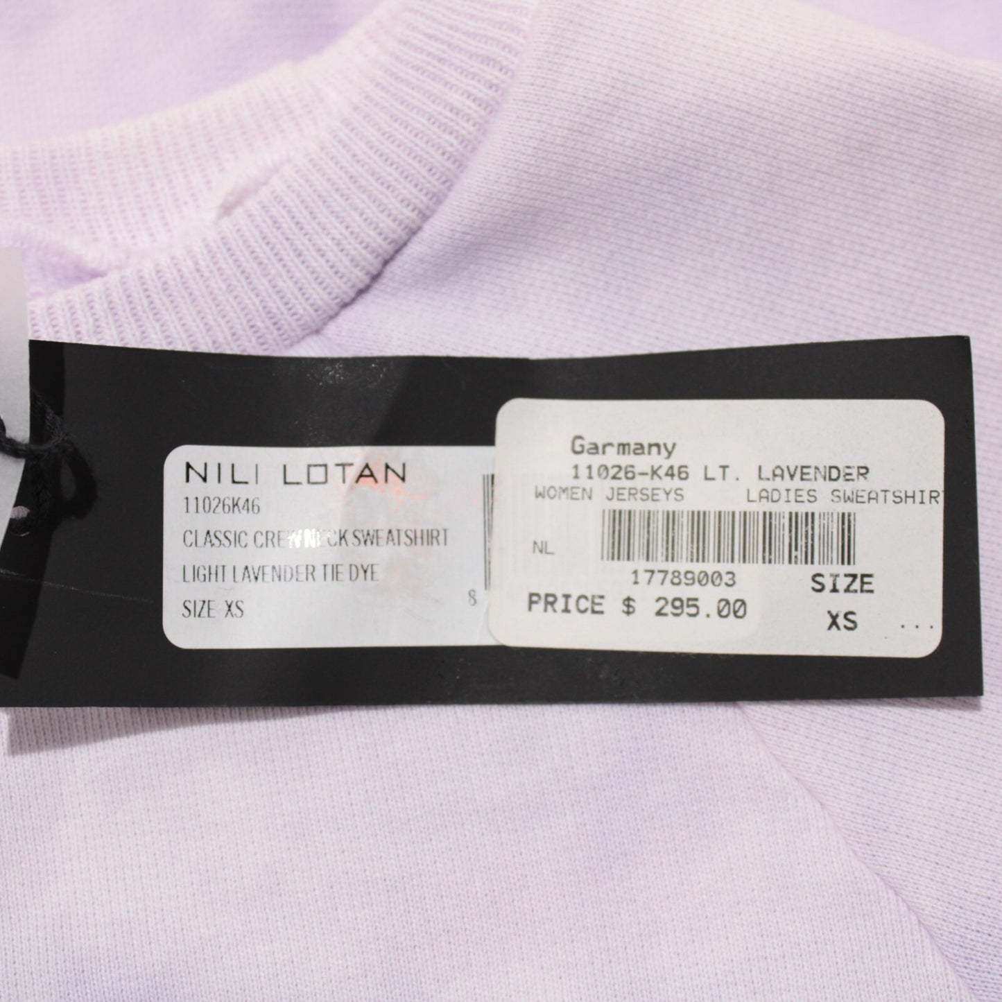Nili Lotan NWT Classic Crew Neck Sweatshirt Size XS Lavender Tie Dye 100% Cotton