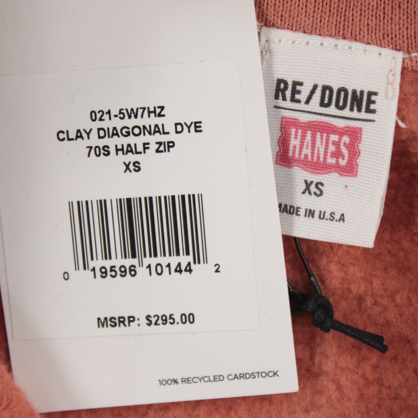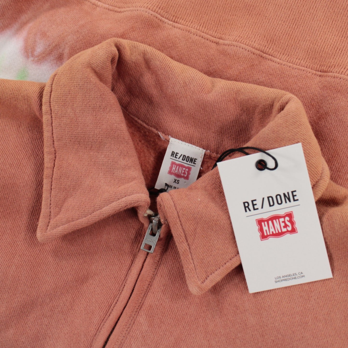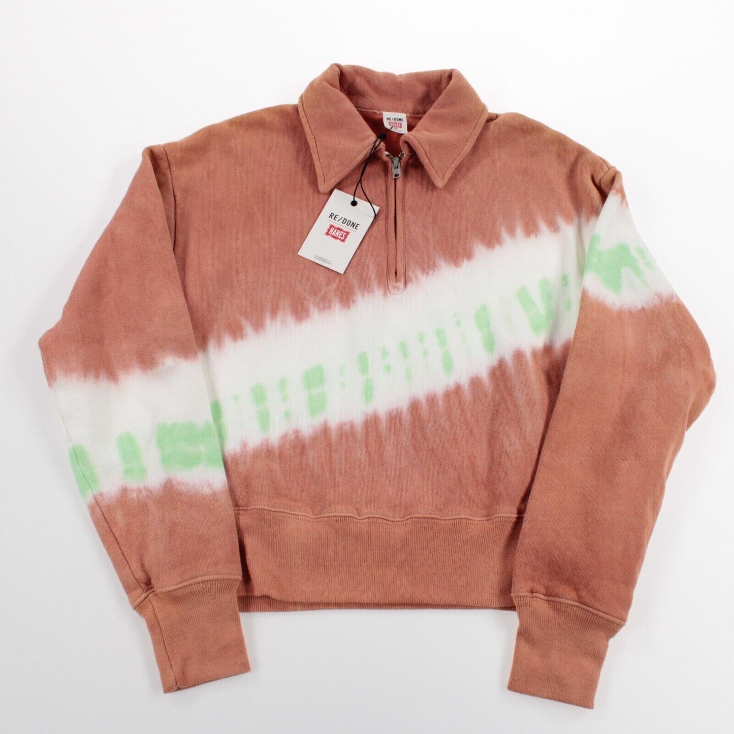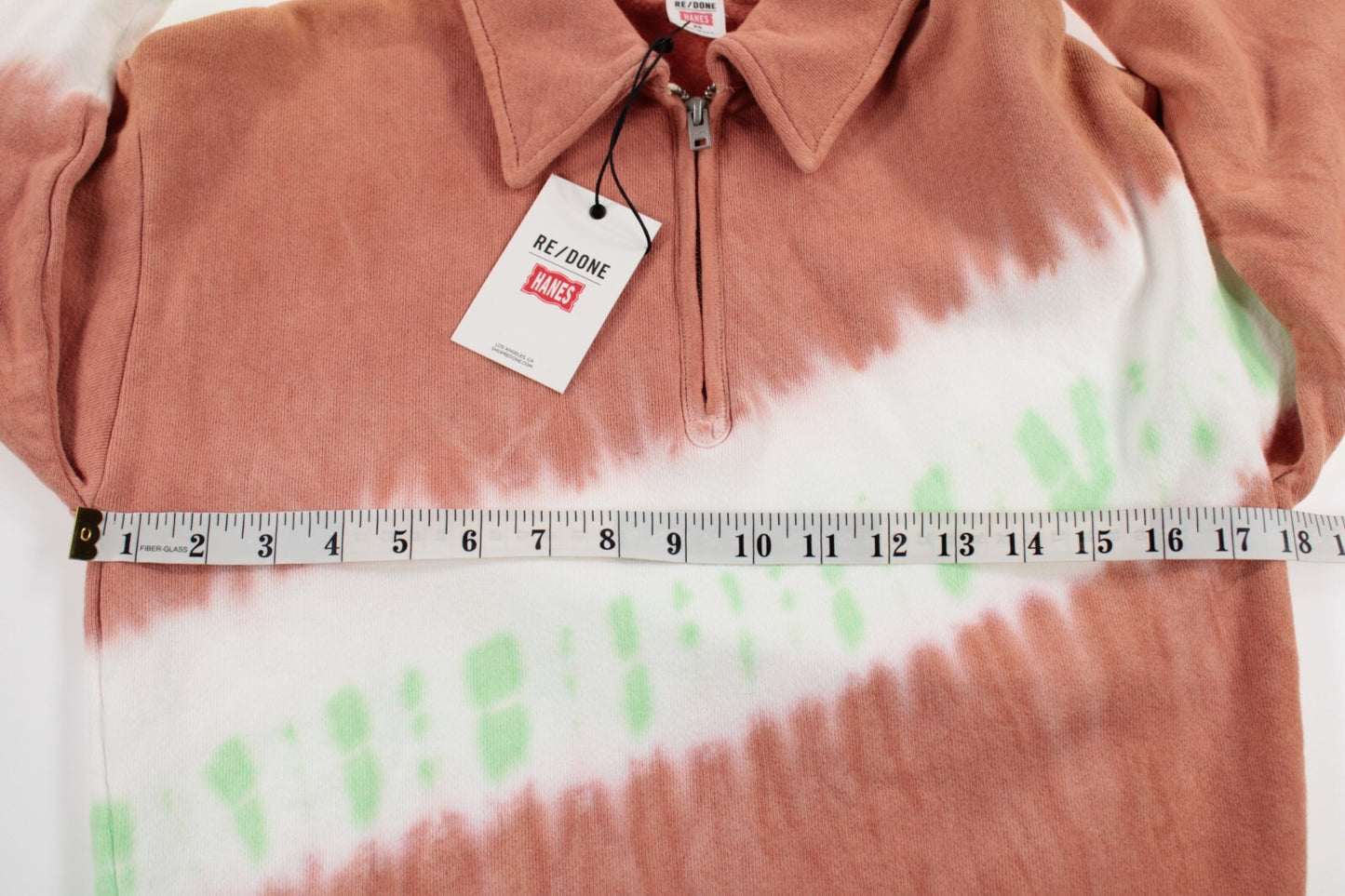 Re/Done X Hanes NWT 70s Half Zip Sweatshirt Size XS in Clay/Green Diagonal Dye