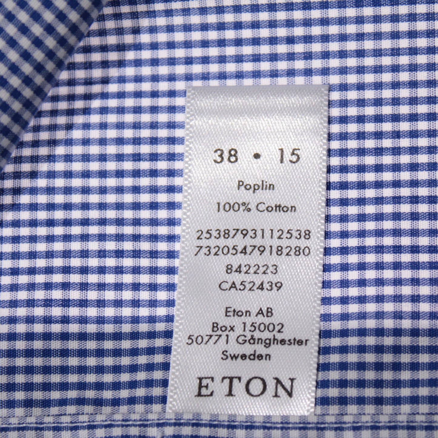 Eton NWT Dress Shirt Sz 38 15 Contemporary Fit in Blue & White Check 100% Cotton
