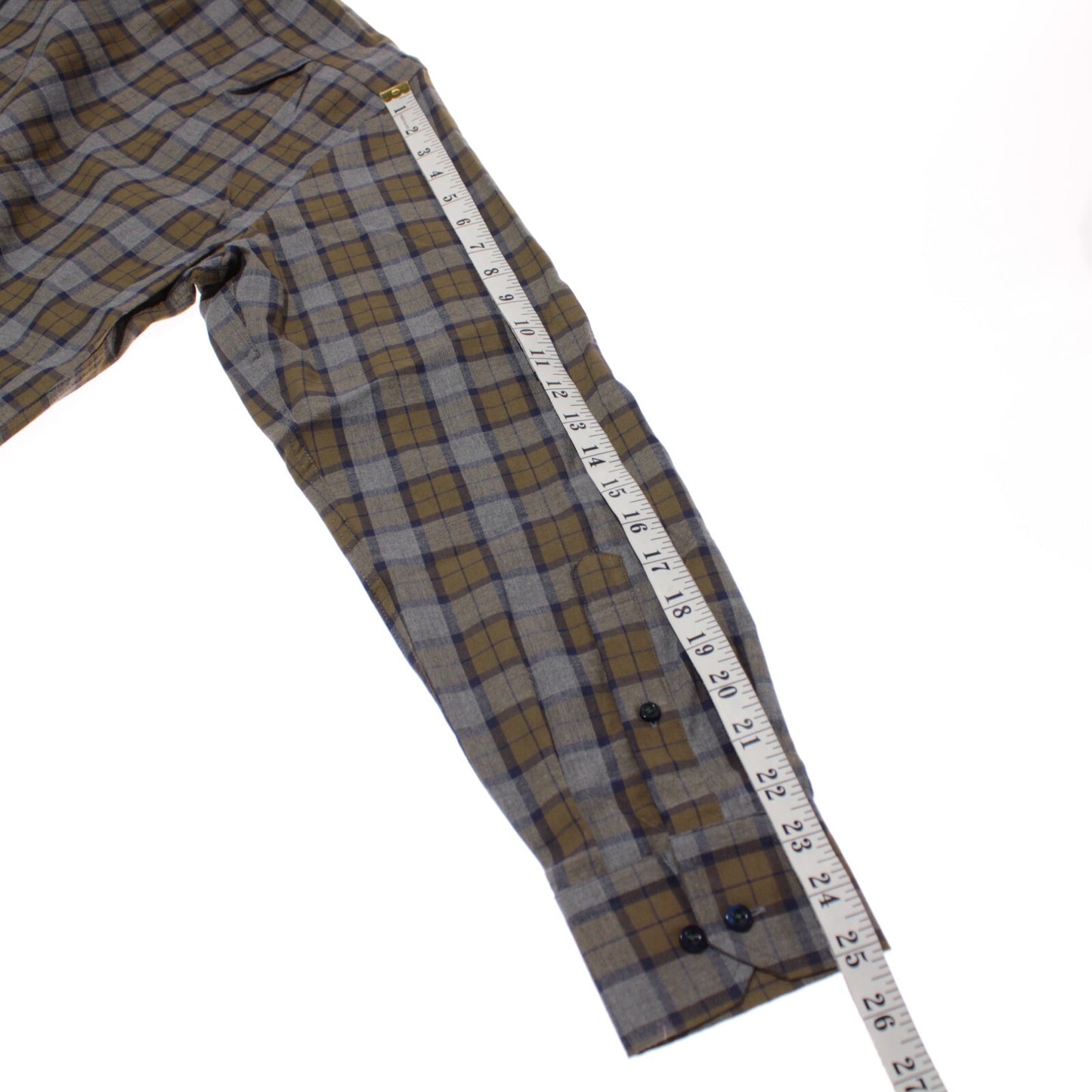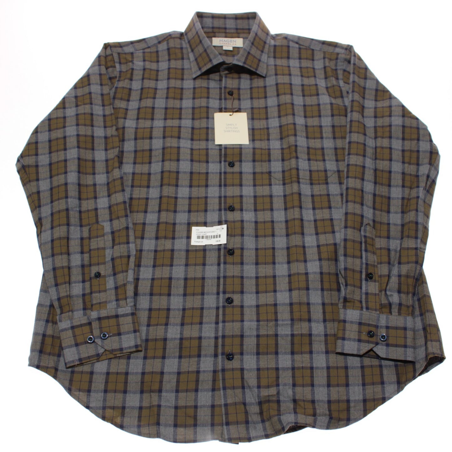 Hagen NWT Casual Button Down Shirt Size L In Olive Green & Blue Plaid Cotton