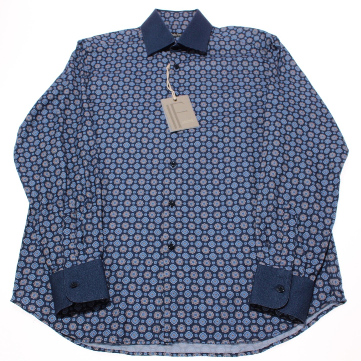 Italo Ferretti NWT Casual Button Down Shirt Size L In Blue Geometric Cotton