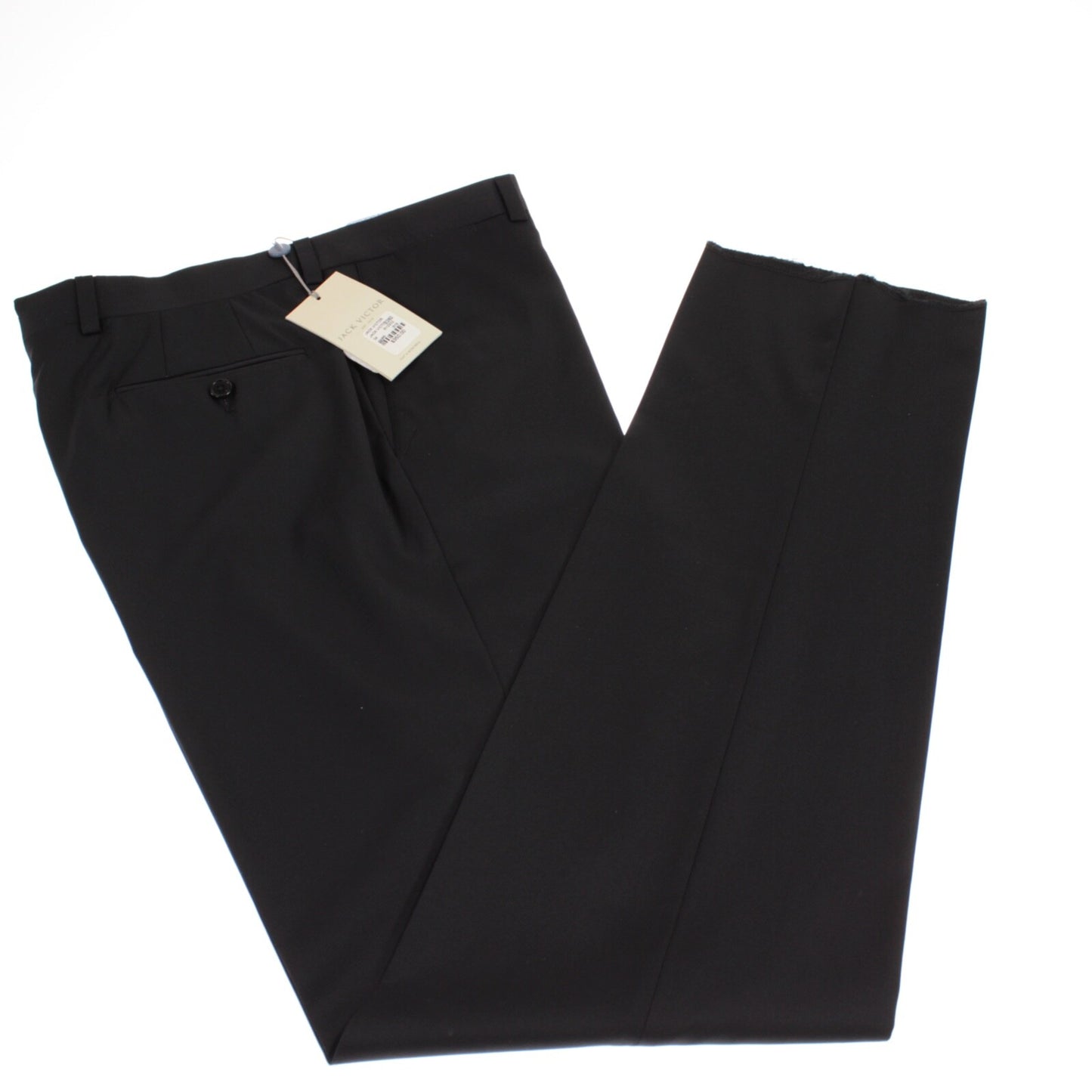 Jack Victor NWT Flat Front Dress Pants Size 34 US Armando Solid Black 100% Wool