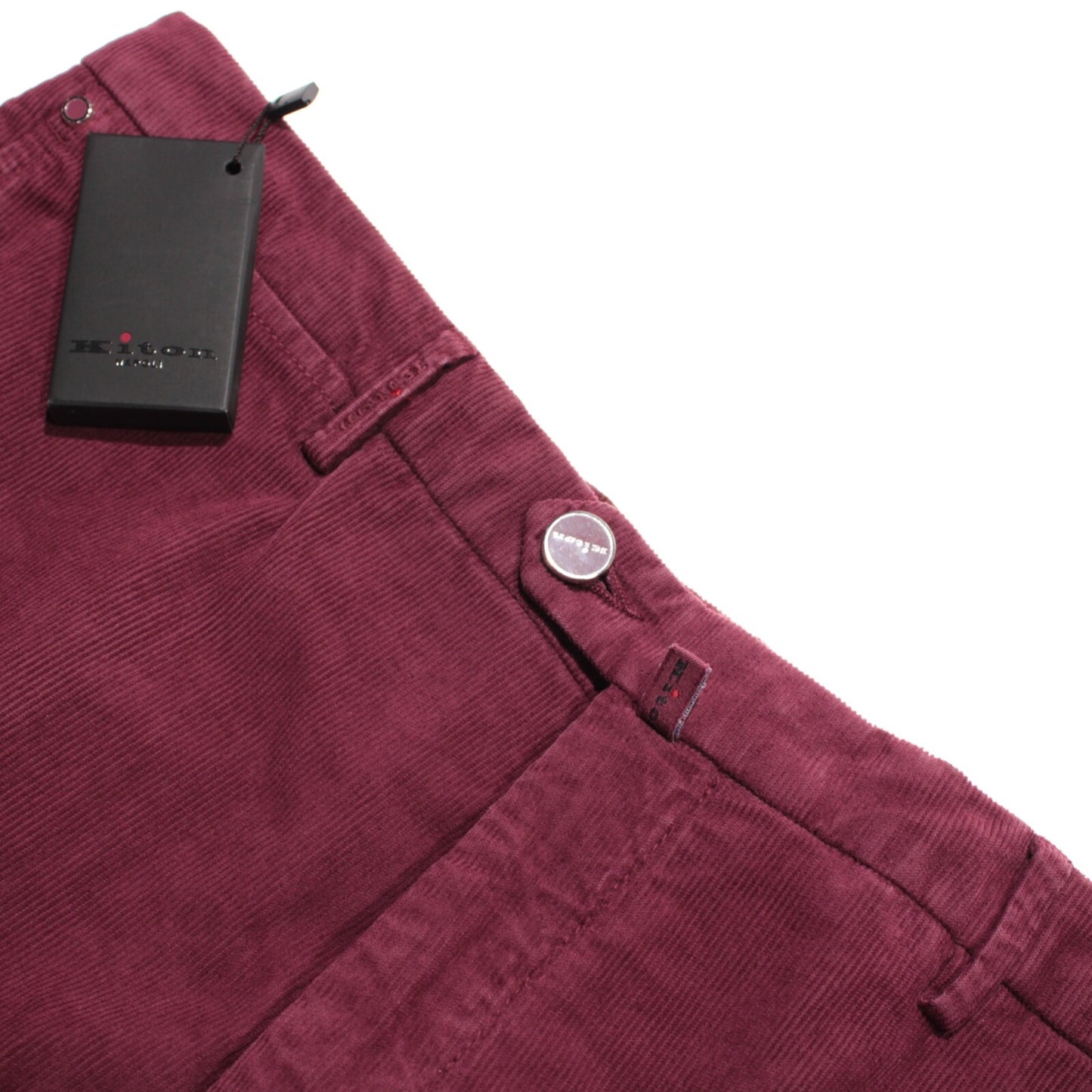 Kiton NWT Casual Chino Corduroy Pants Size 38 US In Solid Burgundy Cotton Blend