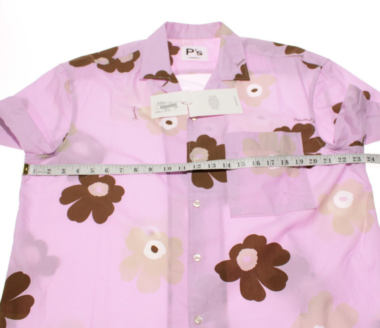 P's President's NWT Casual Button Down Shirt Size L Short Sleeve Purple & Tan