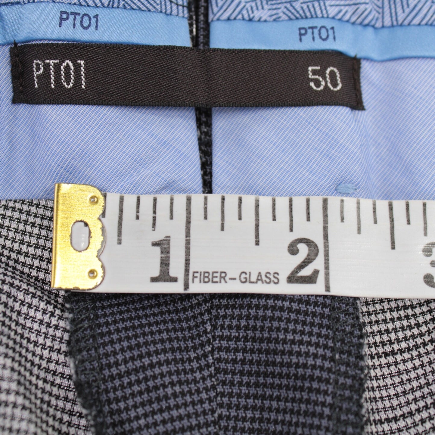 PT01 NWT Flat Front Dress Pants Size 50 34 US Light Gray Plaid 100% Wool