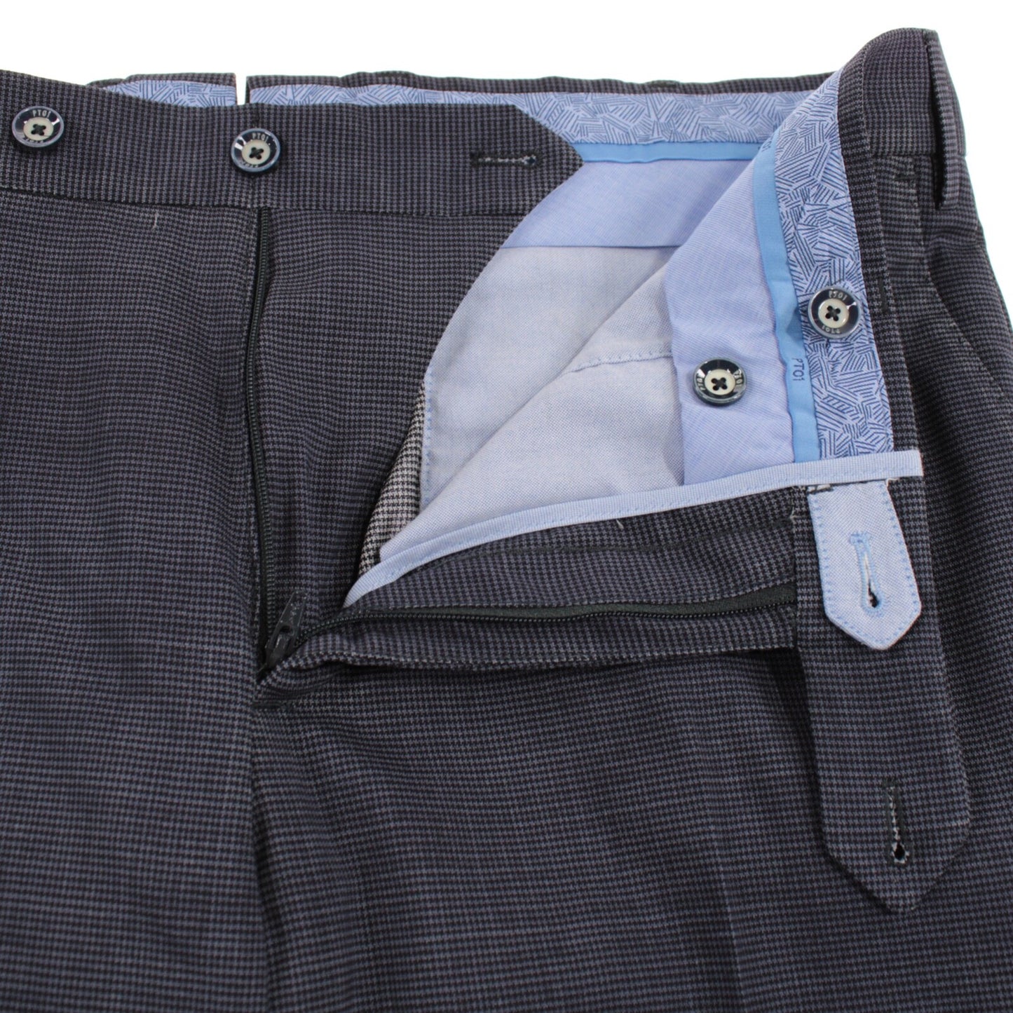PT01 NWT Flat Front Dress Pants Size 50 34 US Blue Small Pattern Wool Blend