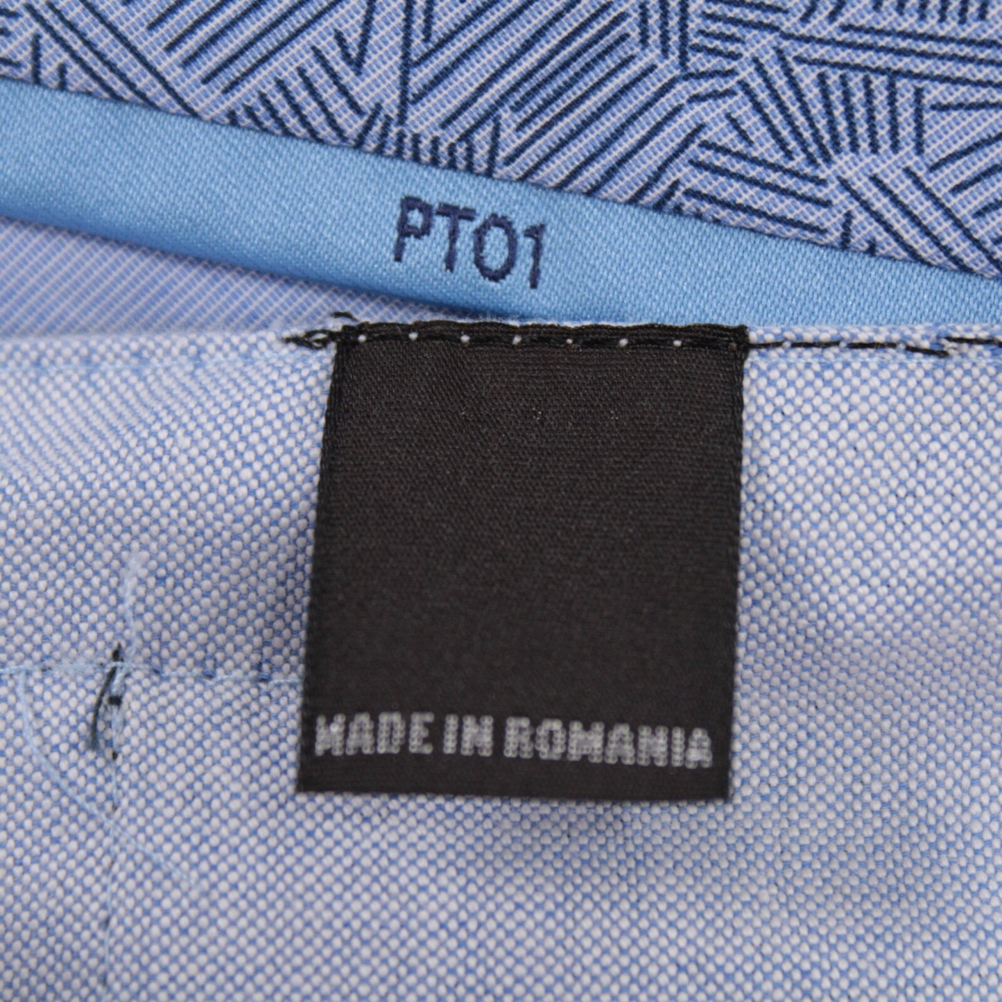 PT01 NWT Flat Front Dress Pants Size 52 36 US Blue Birdseye Wool Blend