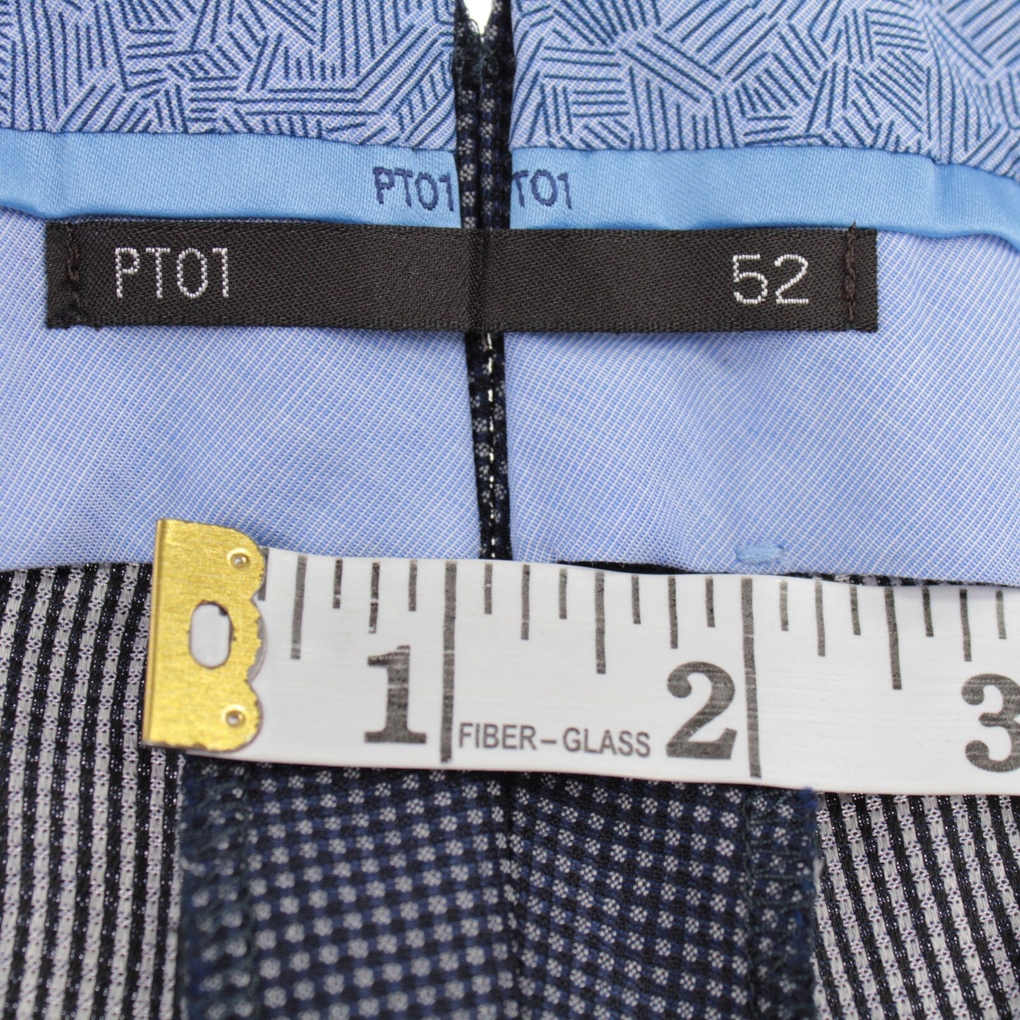 PT01 NWT Flat Front Dress Pants Size 52 36 US In Dark Blue Plaid Wool Blend