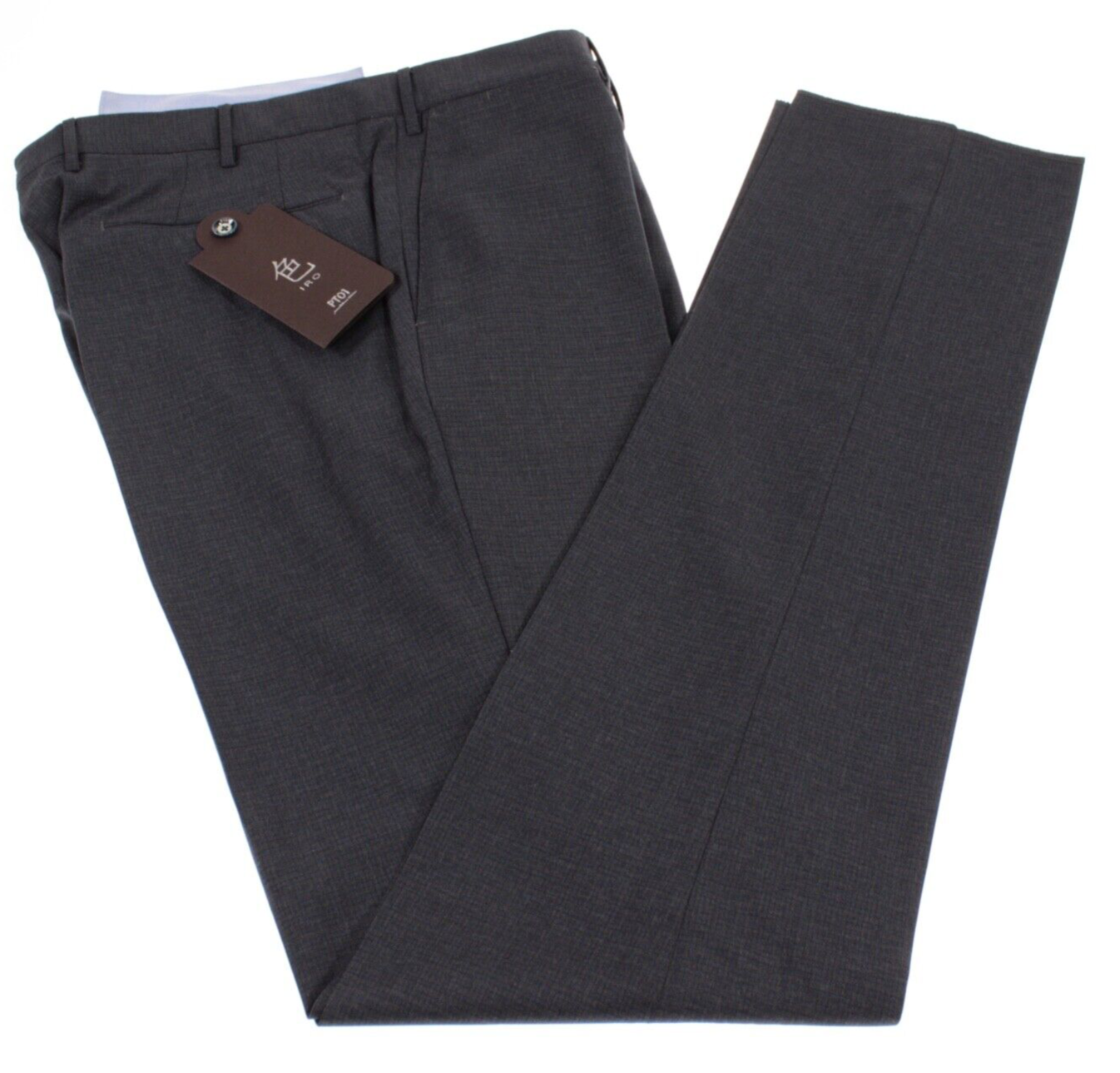 PT01 NWT Flat Front Dress Pants Size 52 36 US Gray & Blue Small Pattern Wool