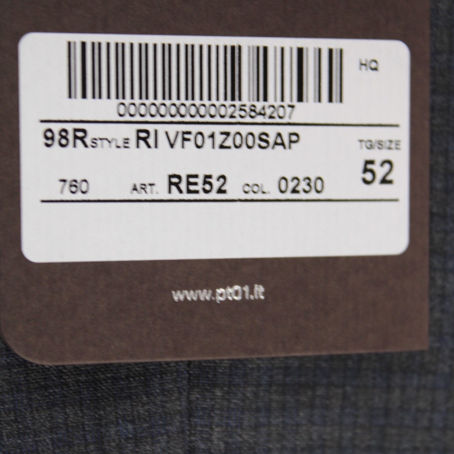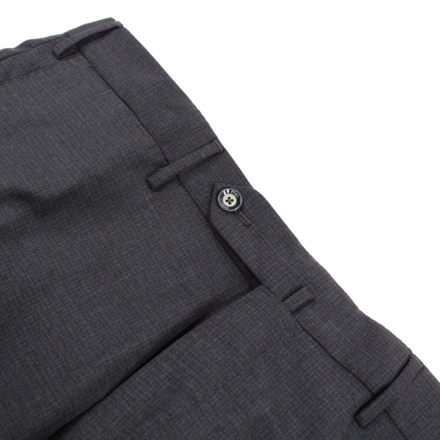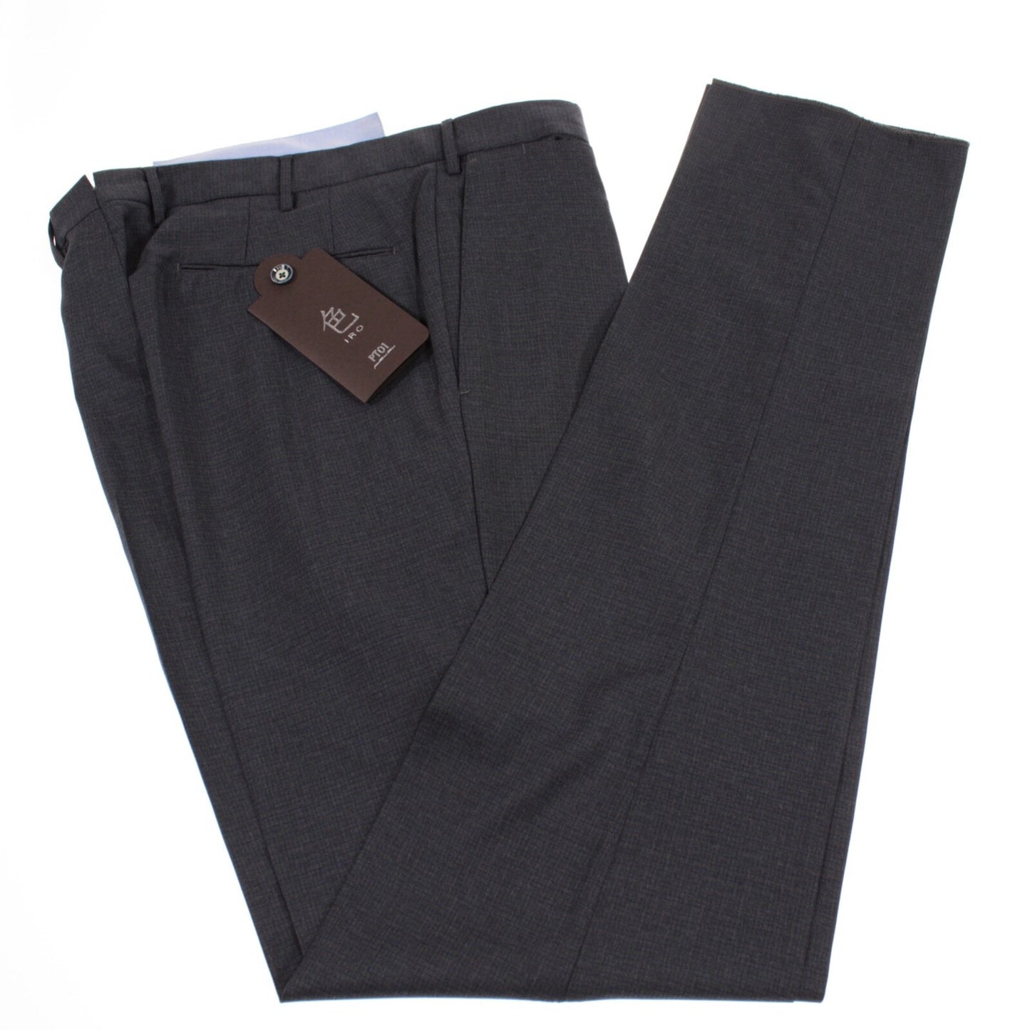 PT01 NWT Flat Front Dress Pants Size 52 36 US Gray & Blue Small Pattern Wool