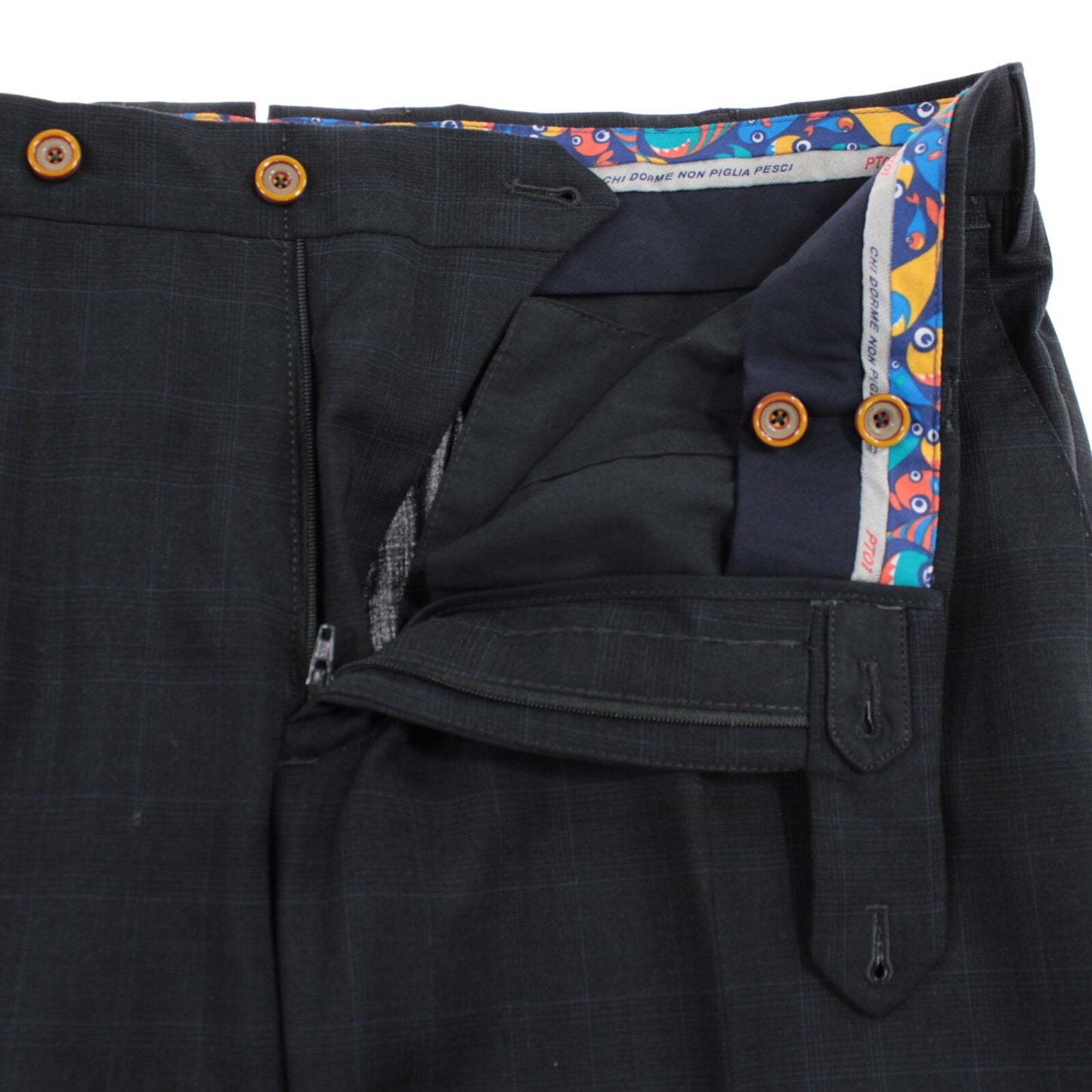 PT01 NWT Flat Front Dress Pants Size 52 36 US In Dark Blue Plaid Wool Blend