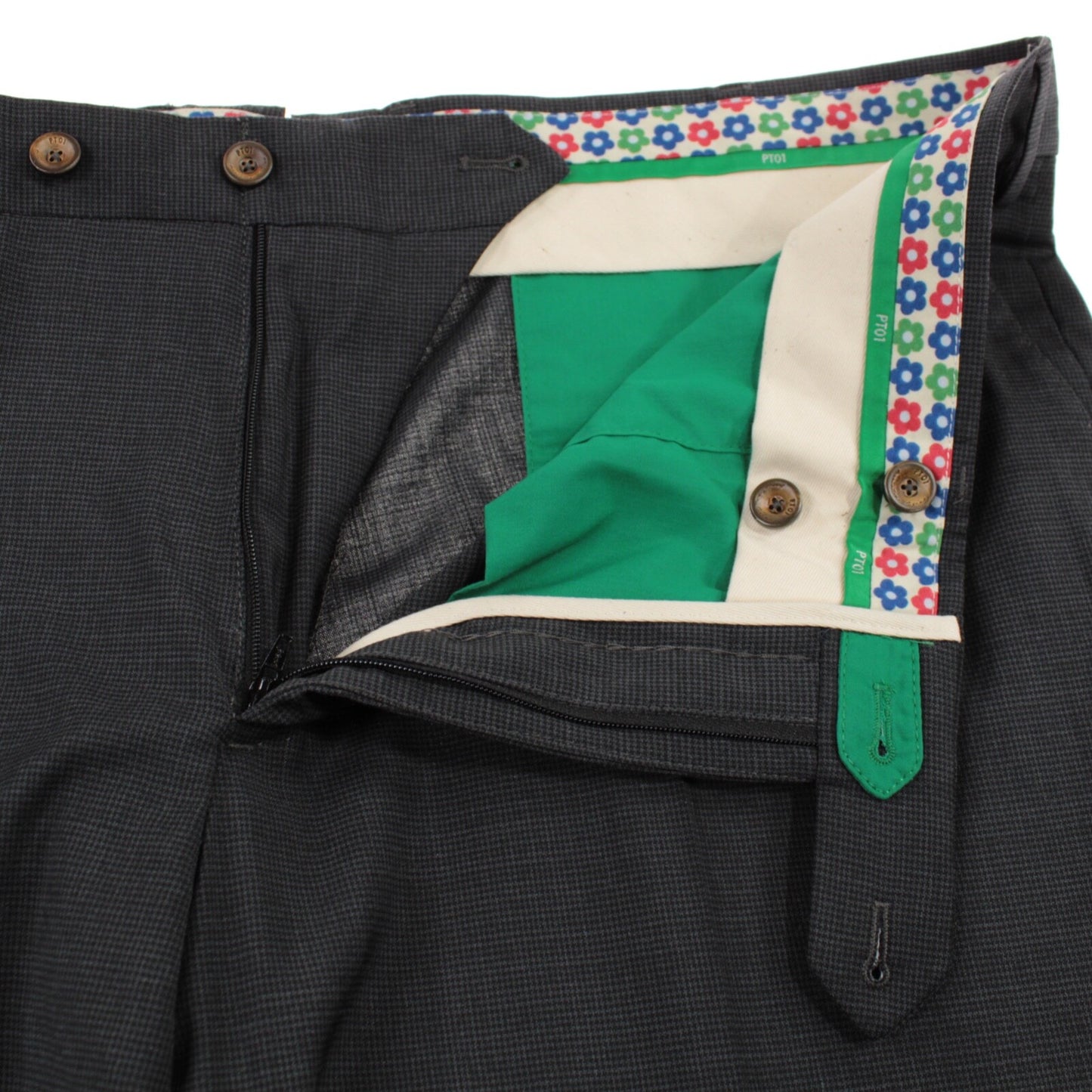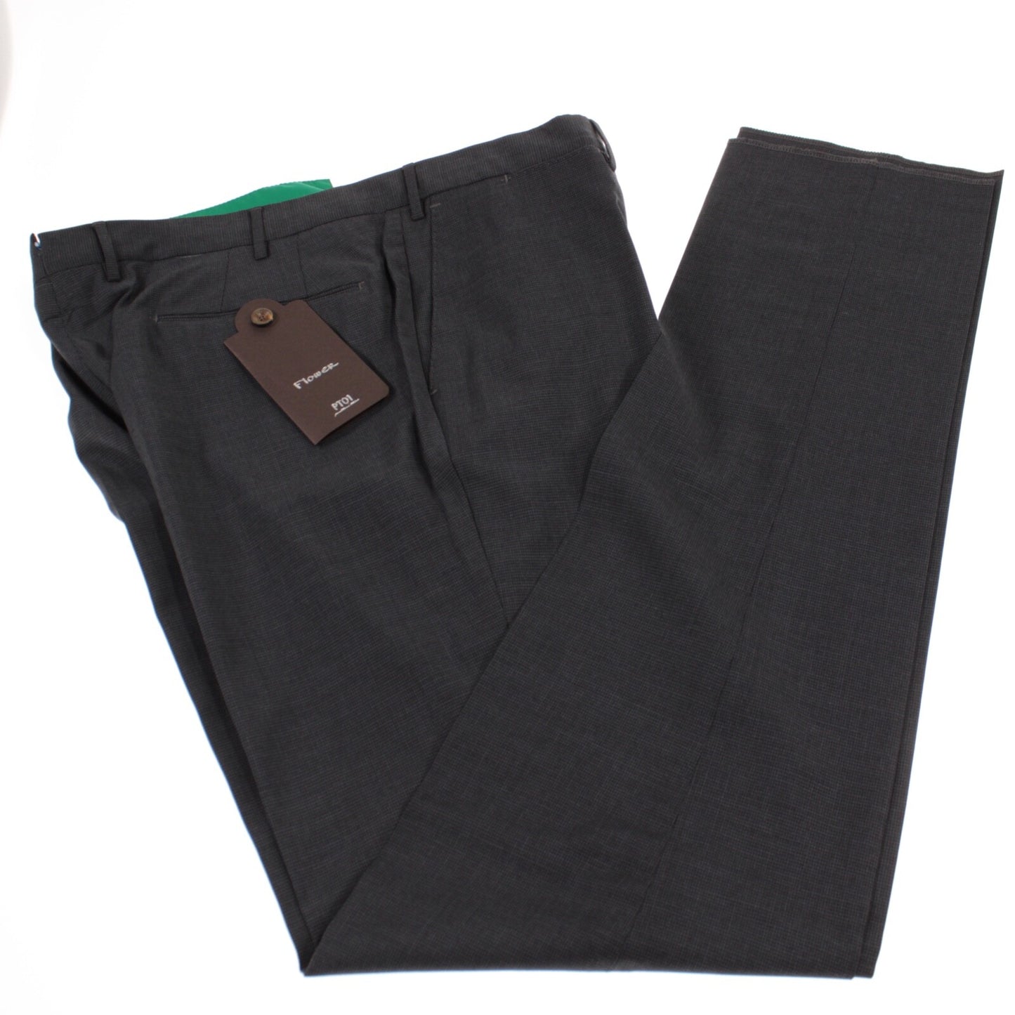 PT01 NWT Flat Front Dress Pants Size 56 40 US Gray Small Pattern Wool Blend