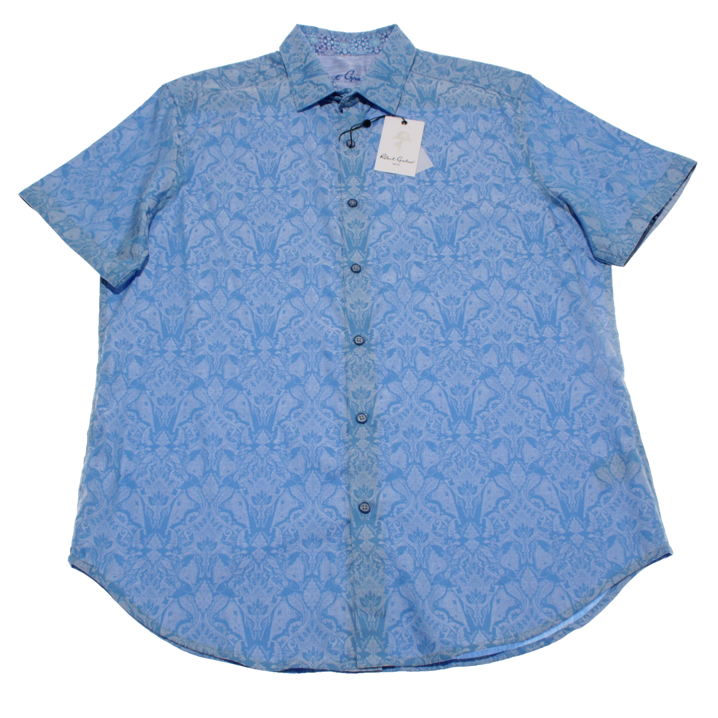 Robert Graham NWT Bennett Casual Short Sleeve Button Down Shirt Size L in Blue
