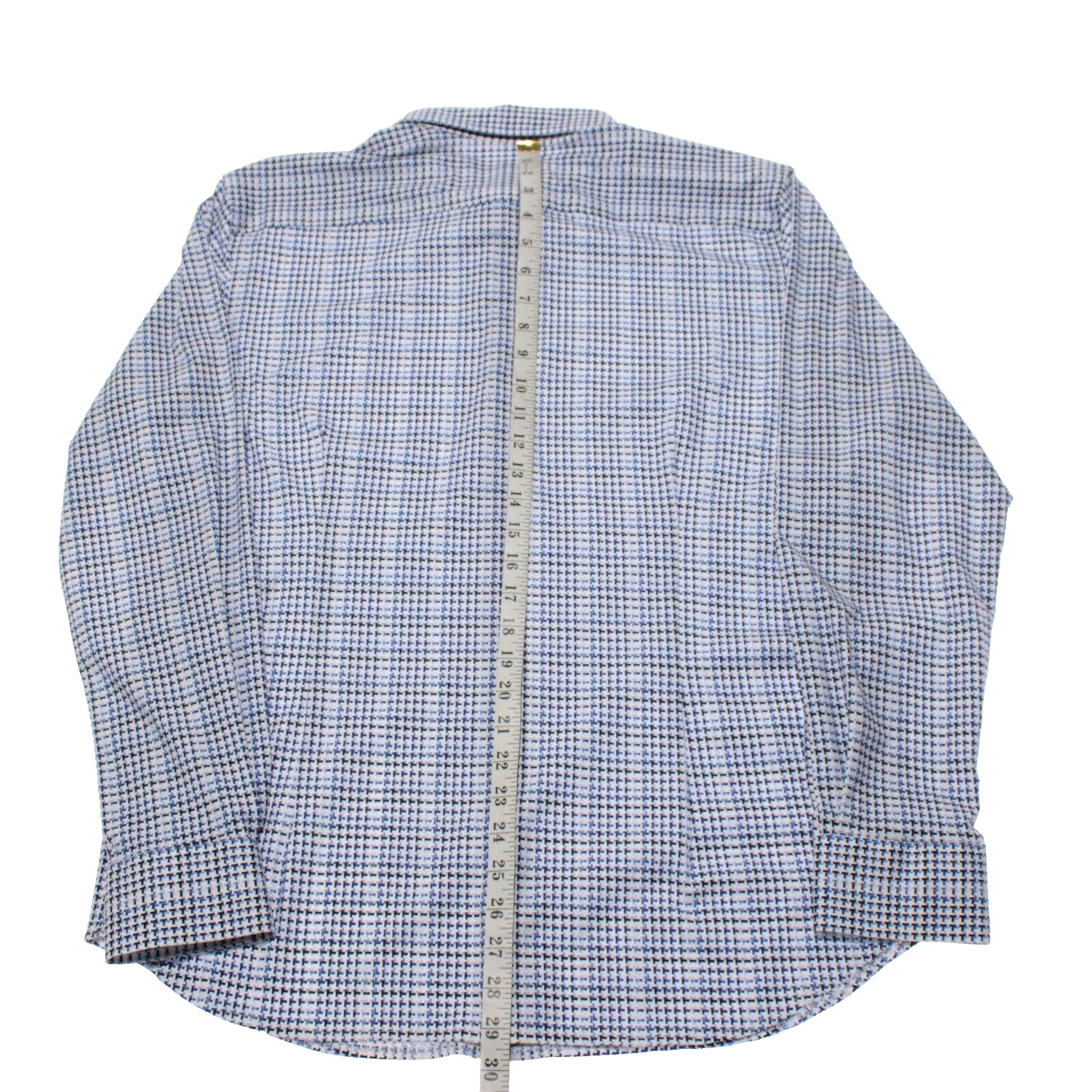 Fray NWT Sport Shirt Size V XL In Blue With Darker Blue Plaid Iridescent Cotton