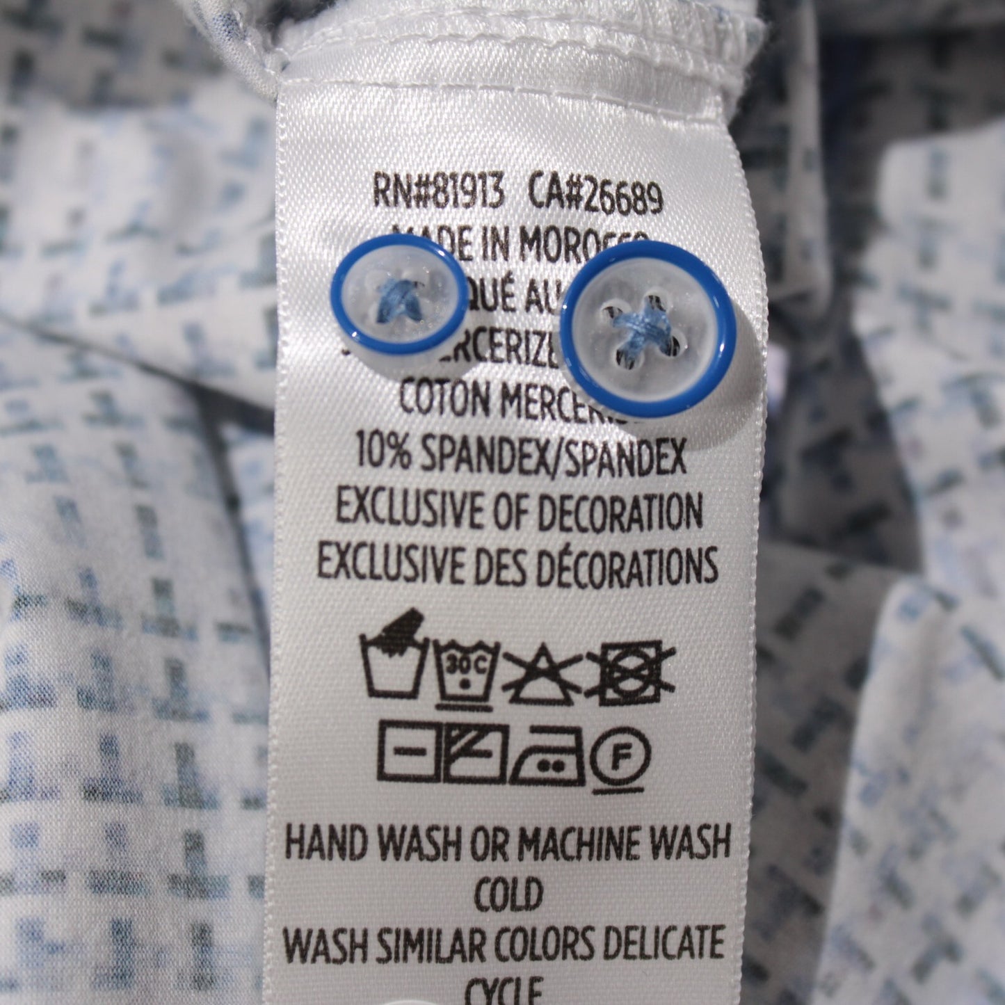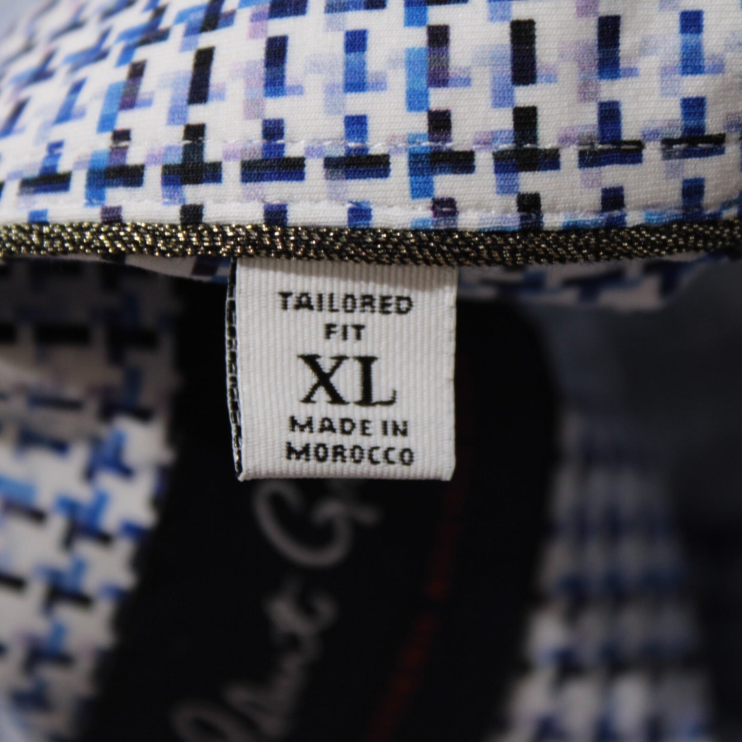 Luciano Barbera NWT Cotton 1/2 Button Up Shirt XL in White/Blue Geometric Print