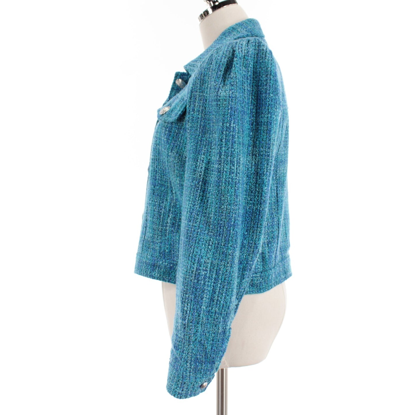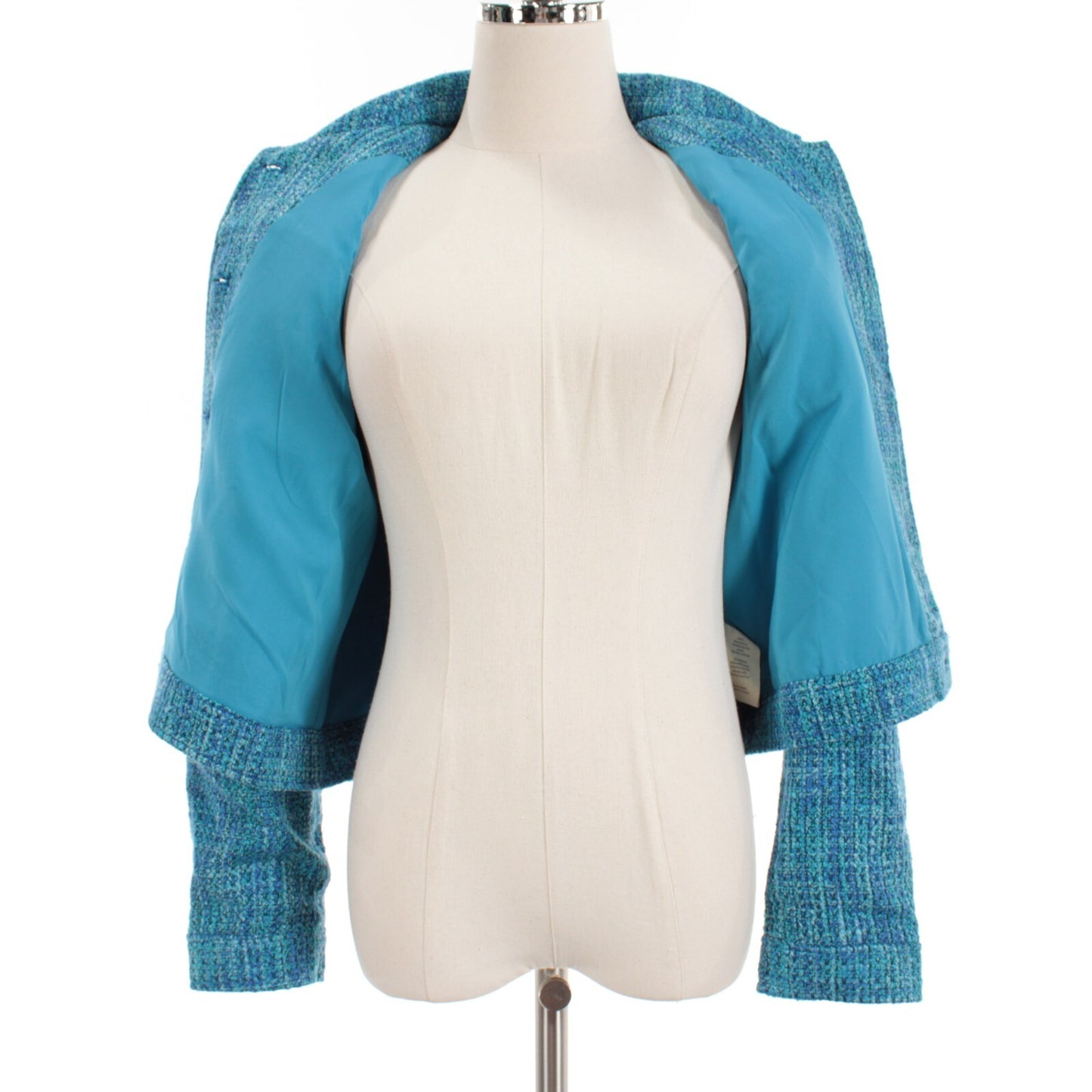 L'agence NWT Kasey 3/4 Sleeve Tweed Blazer Jacket Size Medium in Caribbean Blue