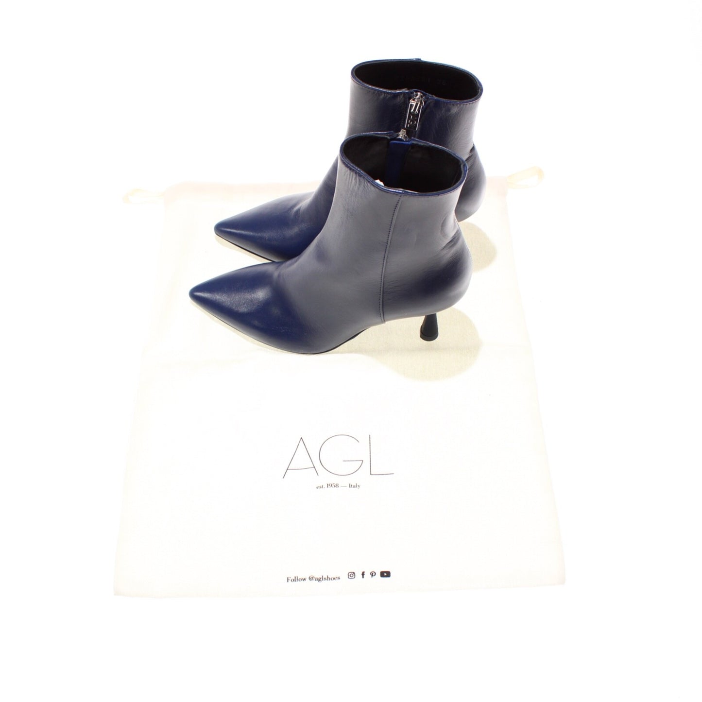 AGL NWB Ide Heeled Leather Booties Size 36 / 6US In Solid Galassia Blue