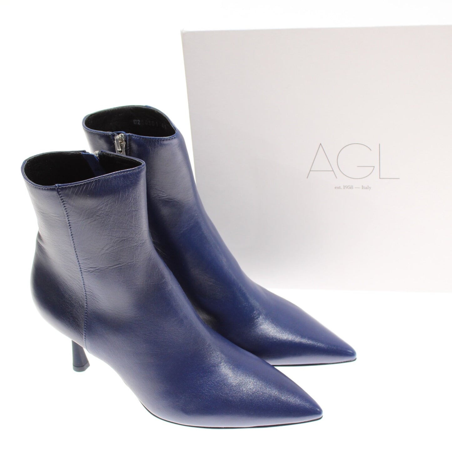 AGL NWB Ide Heeled Leather Booties Size 41 / 11 US In Solid Galassia Blue