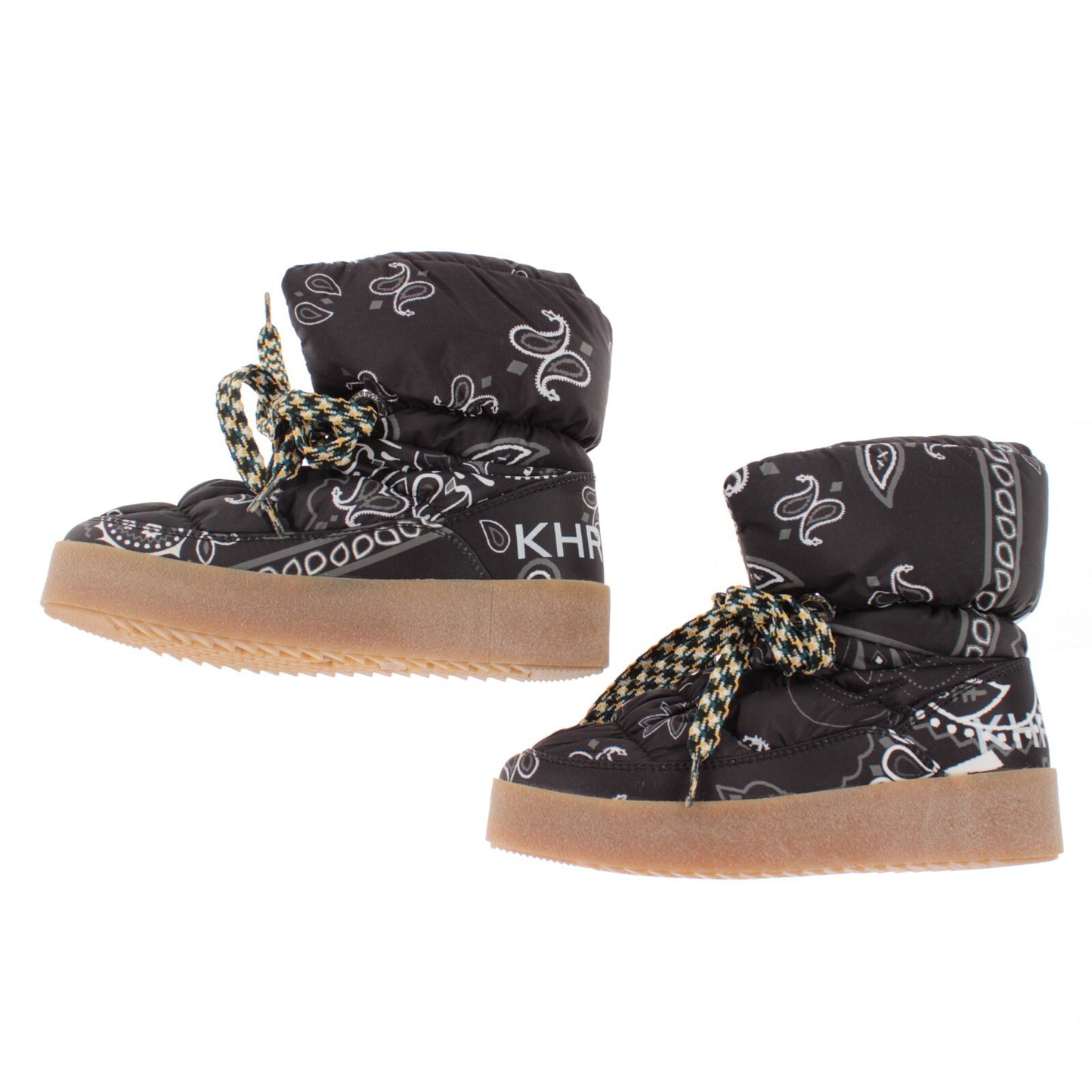 KhrisJoy NWB Puff Bandana Boots In Black & Gray Paisley Size 36 6 US