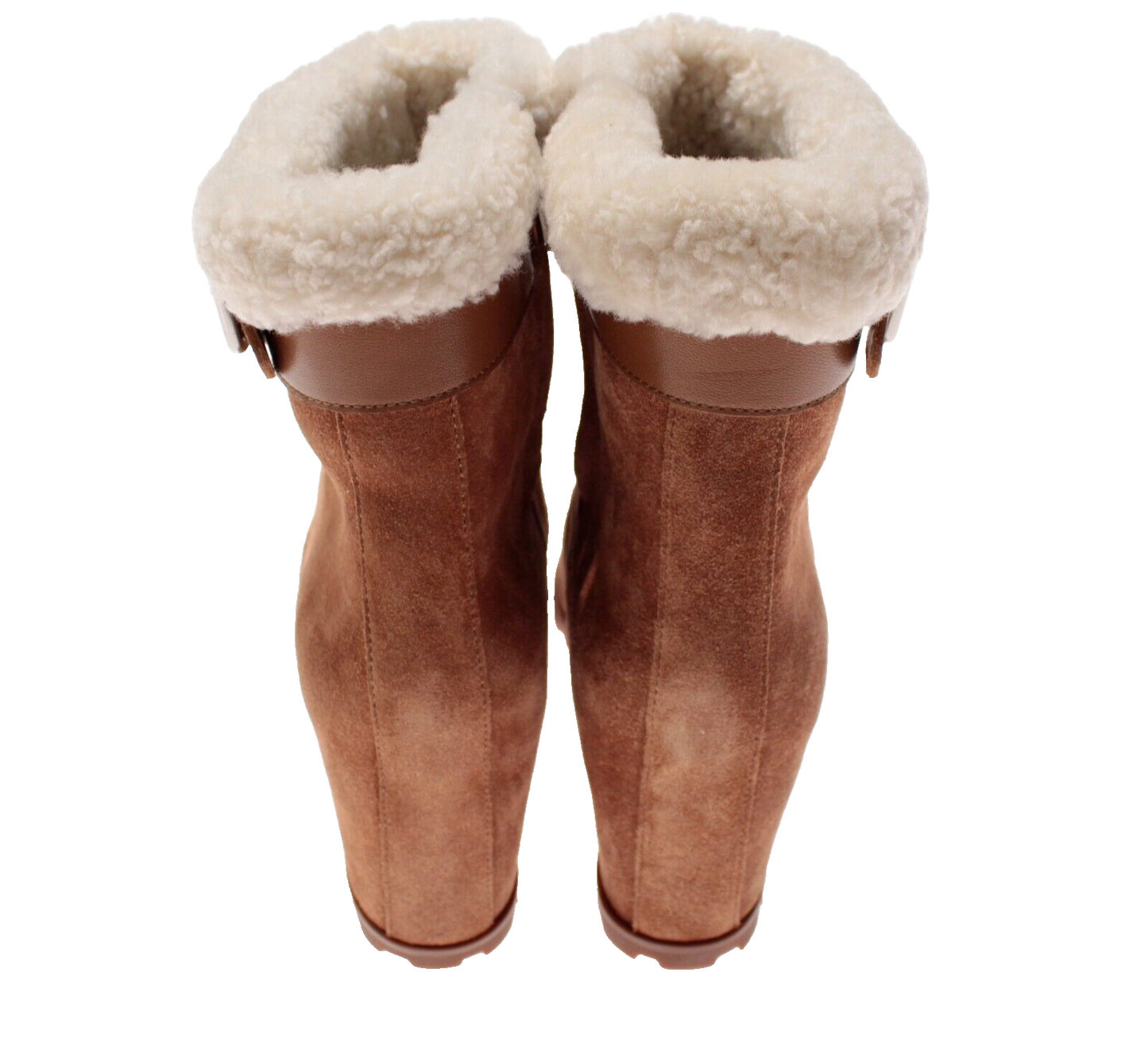 Simkhai NWB Avery Shearling Wedge Ankle Boots Size 40 US 10 in Brown Suede
