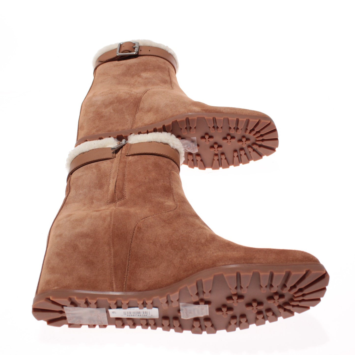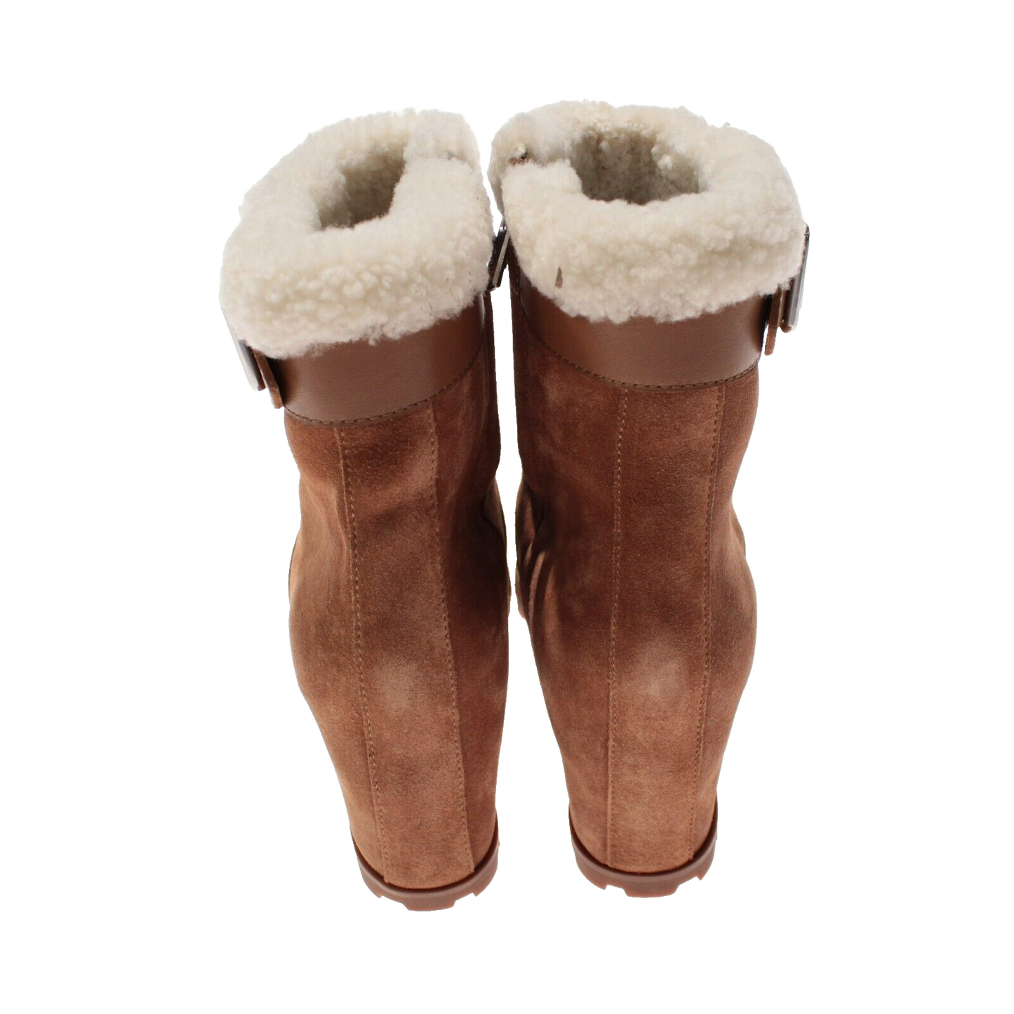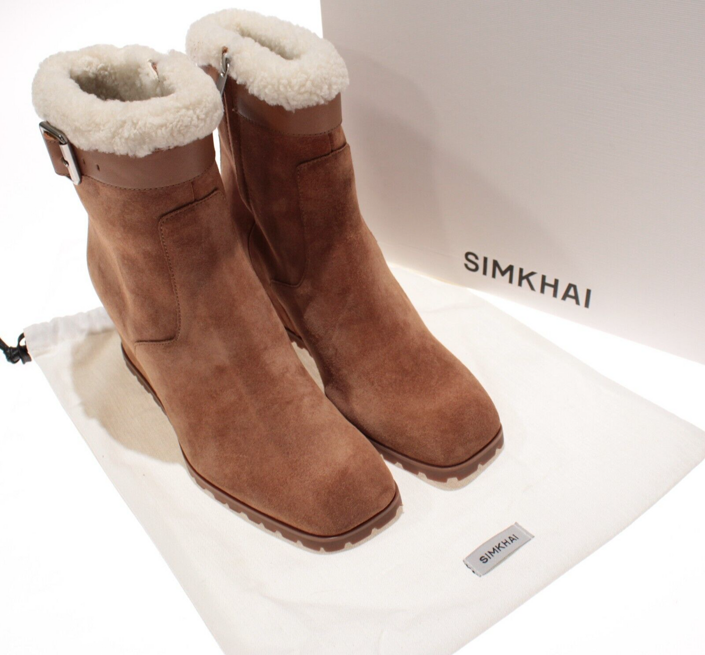 Simkhai NWB Avery Shearling Wedge Ankle Boots Size 41 US 11 in Brown Suede