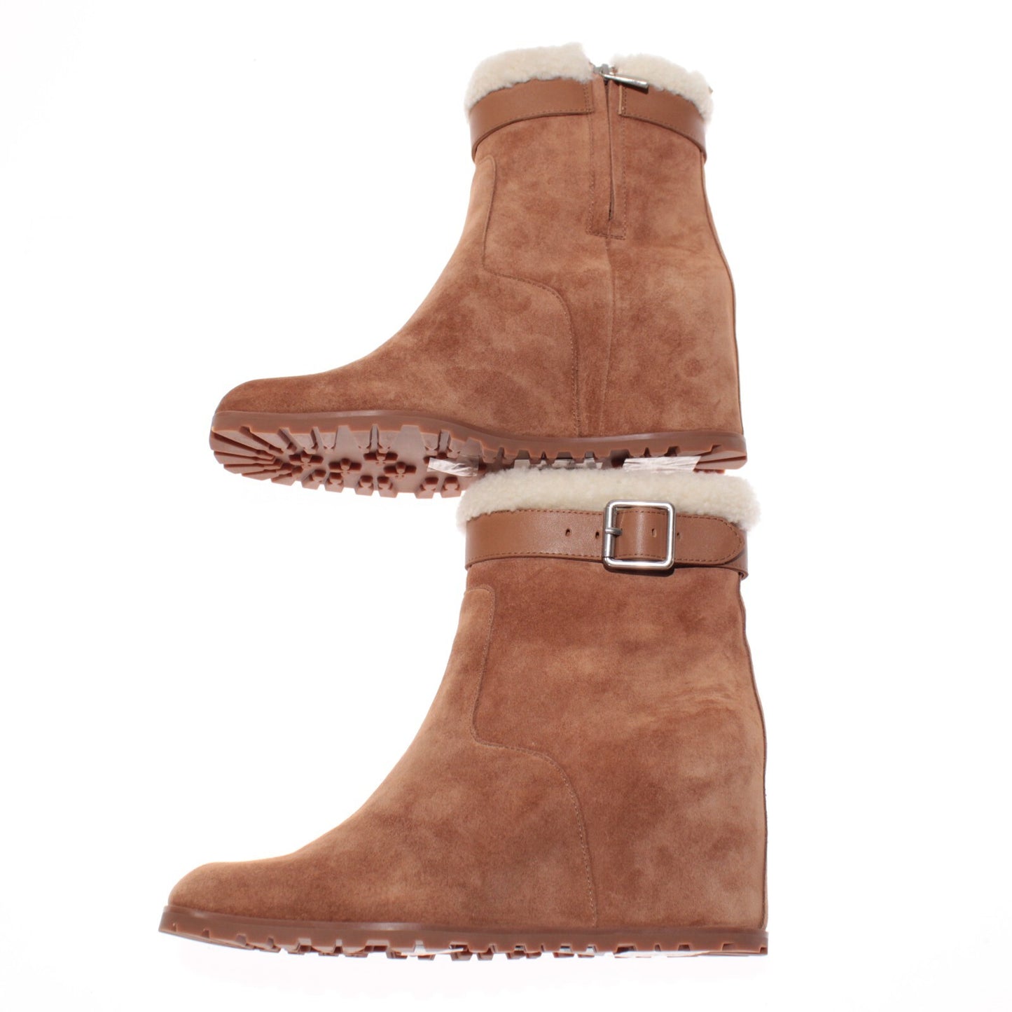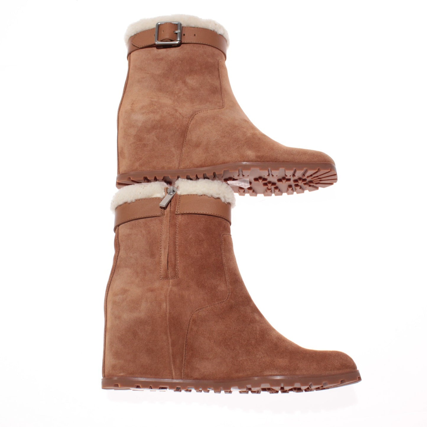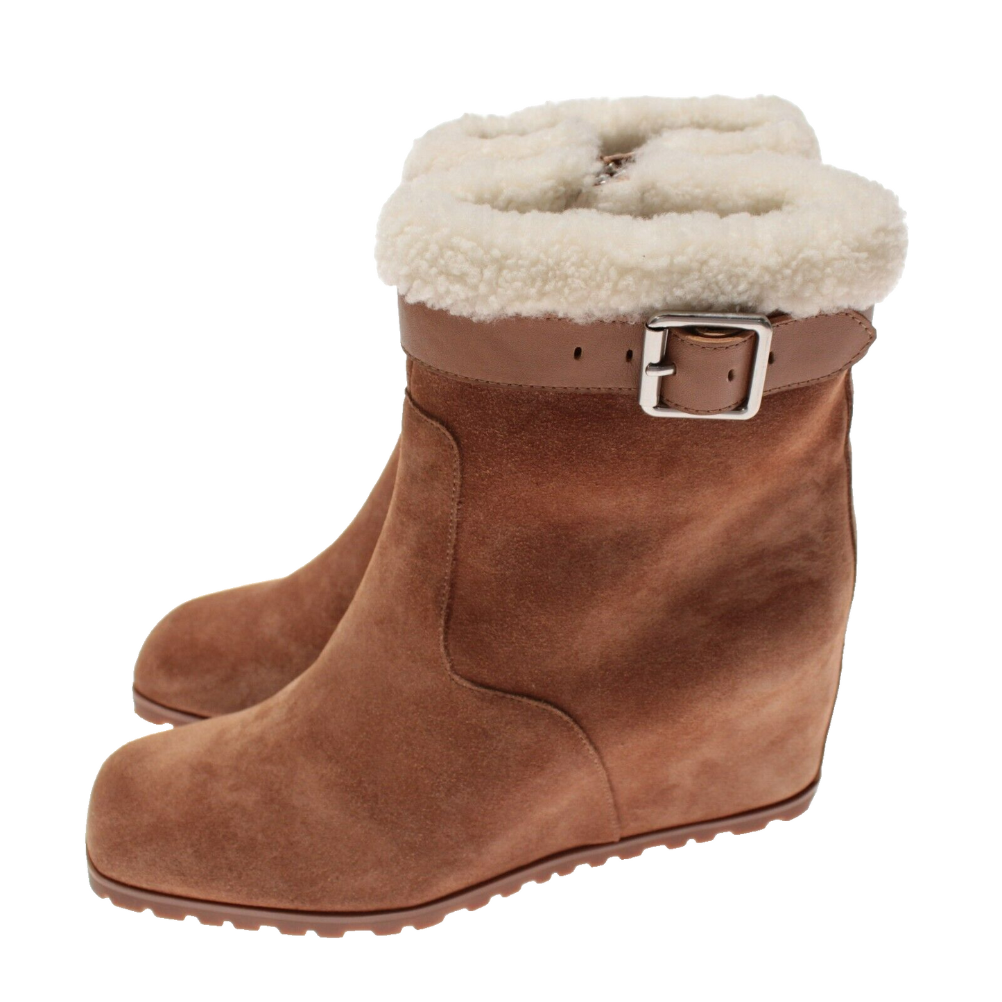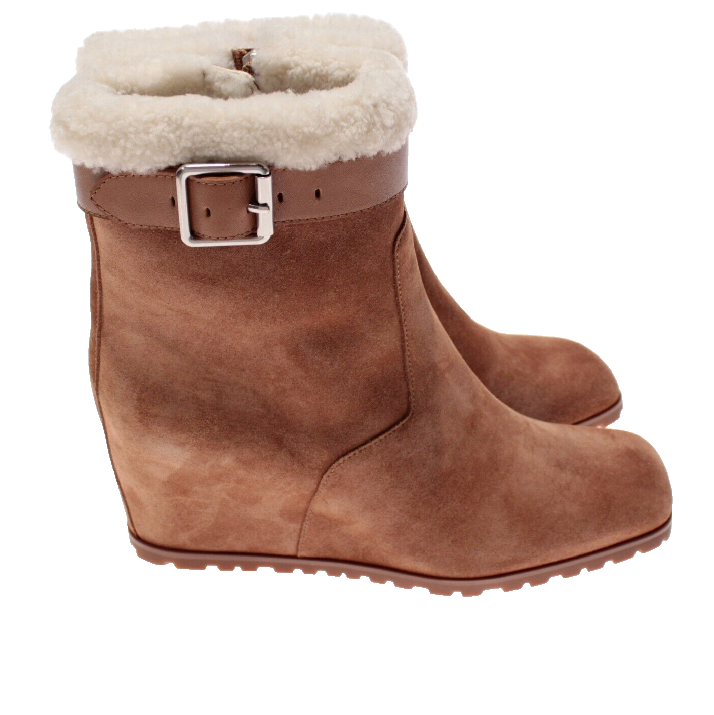 Simkhai NWB Avery Shearling Wedge Ankle Boots Size 41 US 11 in Brown Suede