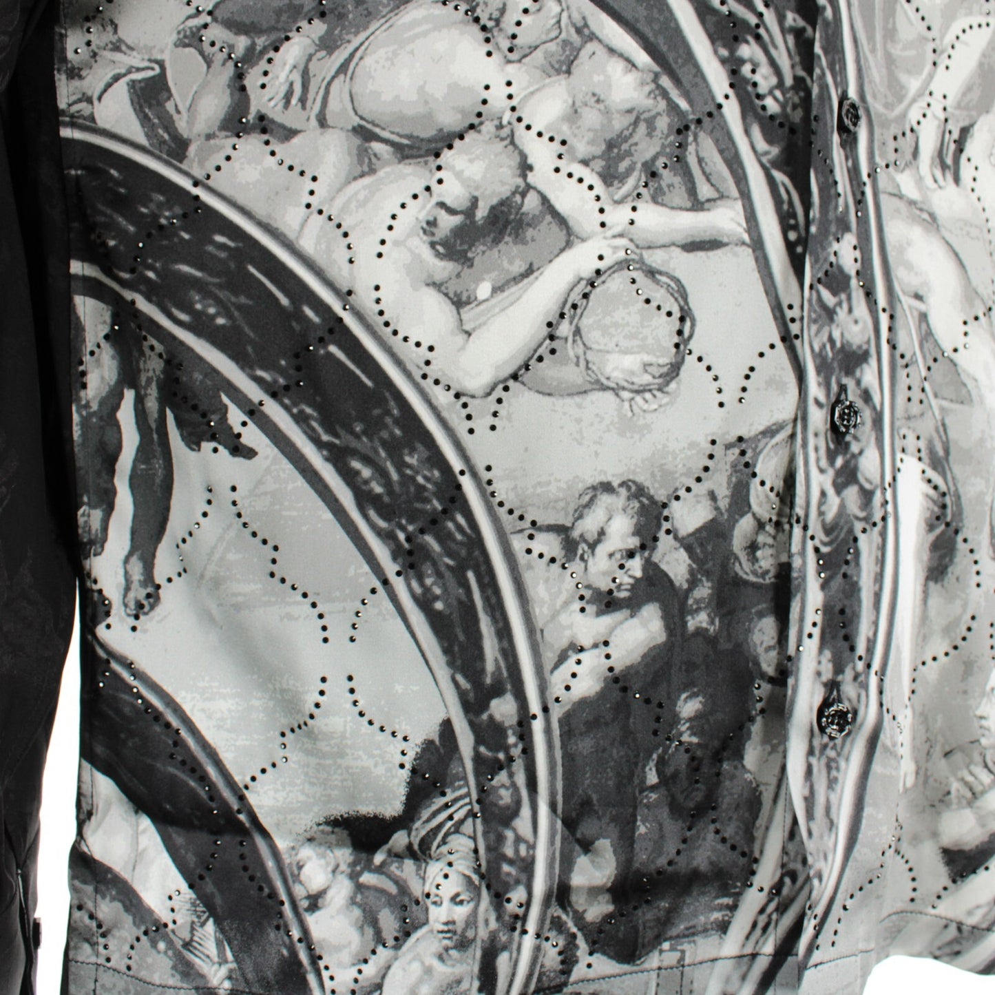Italo Ferretti NWT Silk Button Down Shirt Size S in Black/Gray W/ Swarovski