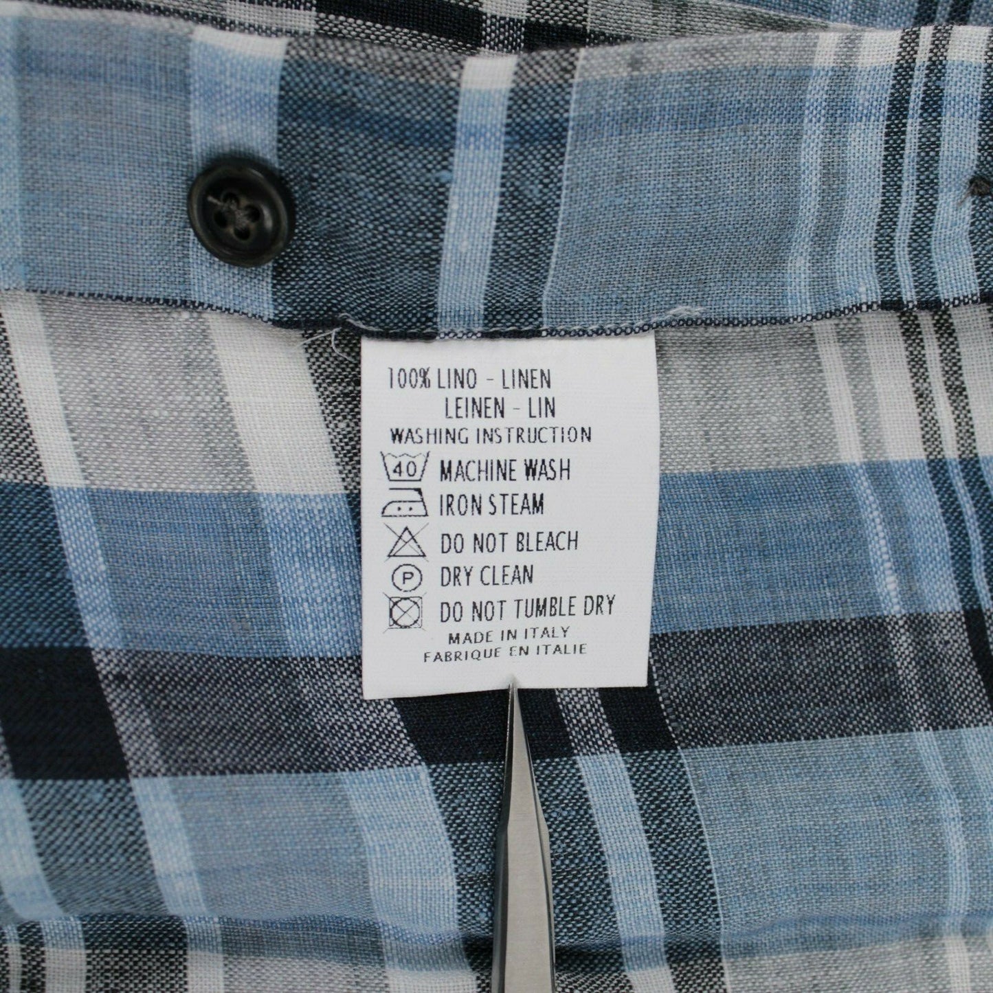 Maurizio Baldassari NWT Button Up Sport Shirt Size 2XL Blue White Plaid Linen