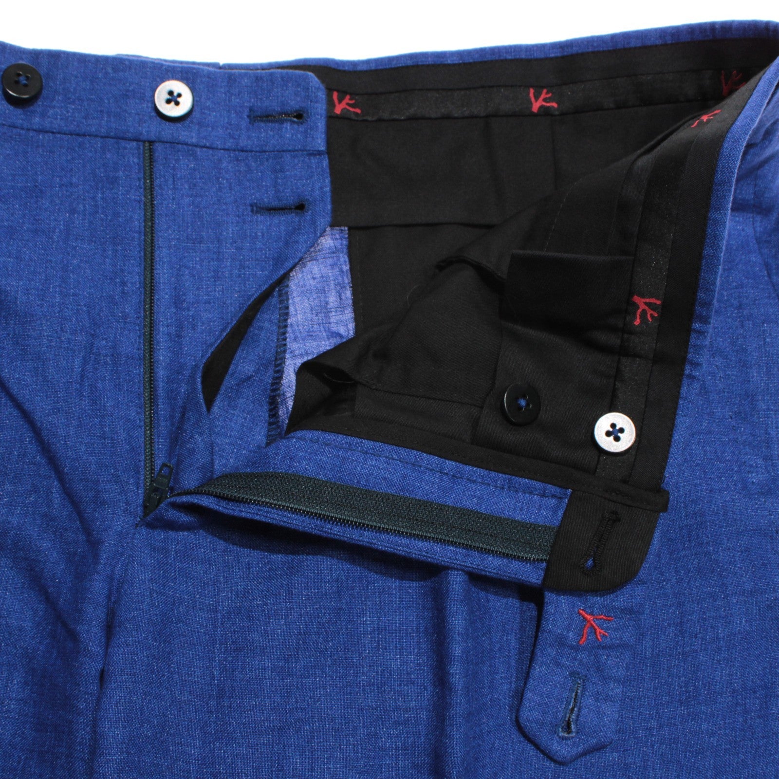Isaia NWT Chinos / Casual Pants Size 52 (36 US) In Solid Blue 100% Linen