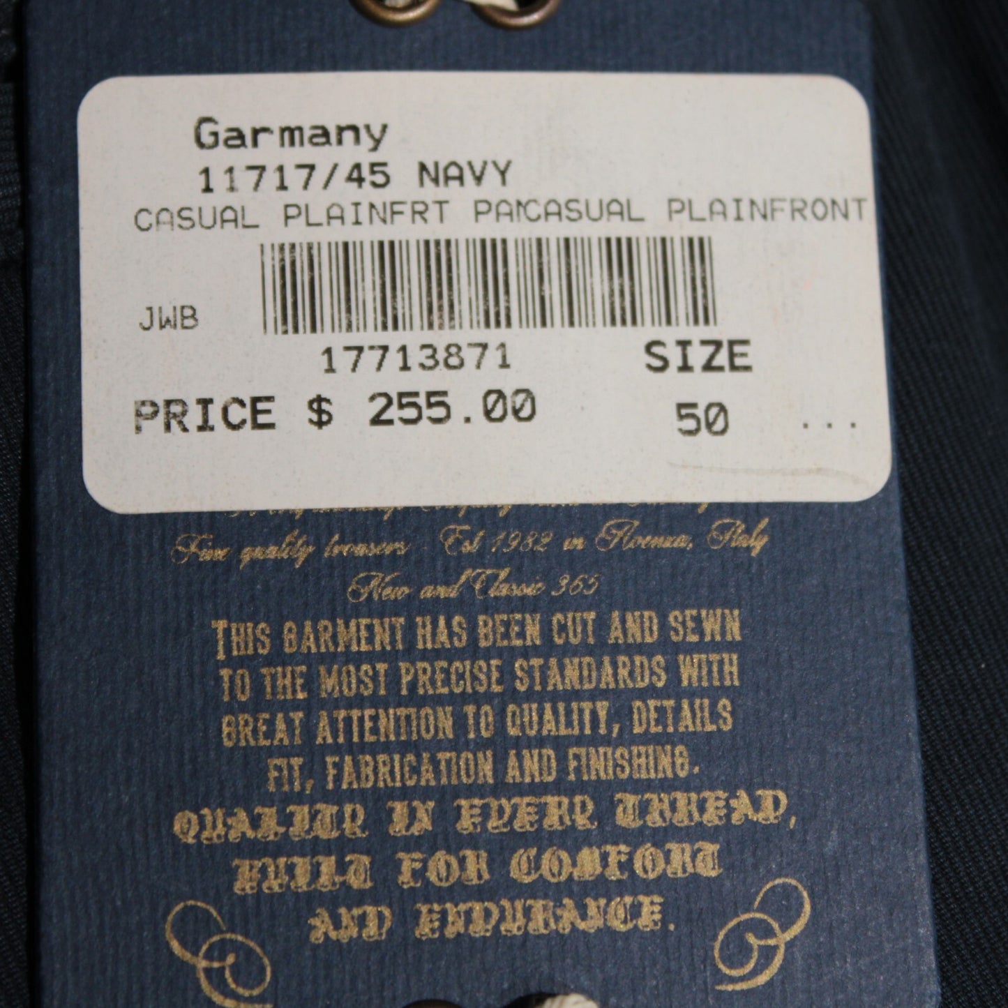 J.W. Brine NWT Chinos / Casual Pants Size 50 34 US Solid Blue Cotton Blend