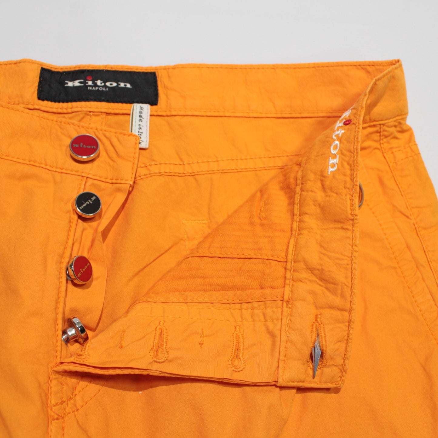 Kiton NWT Pleated Chinos / Casual Pants Size 33 US Solid Orange 100% Cotton