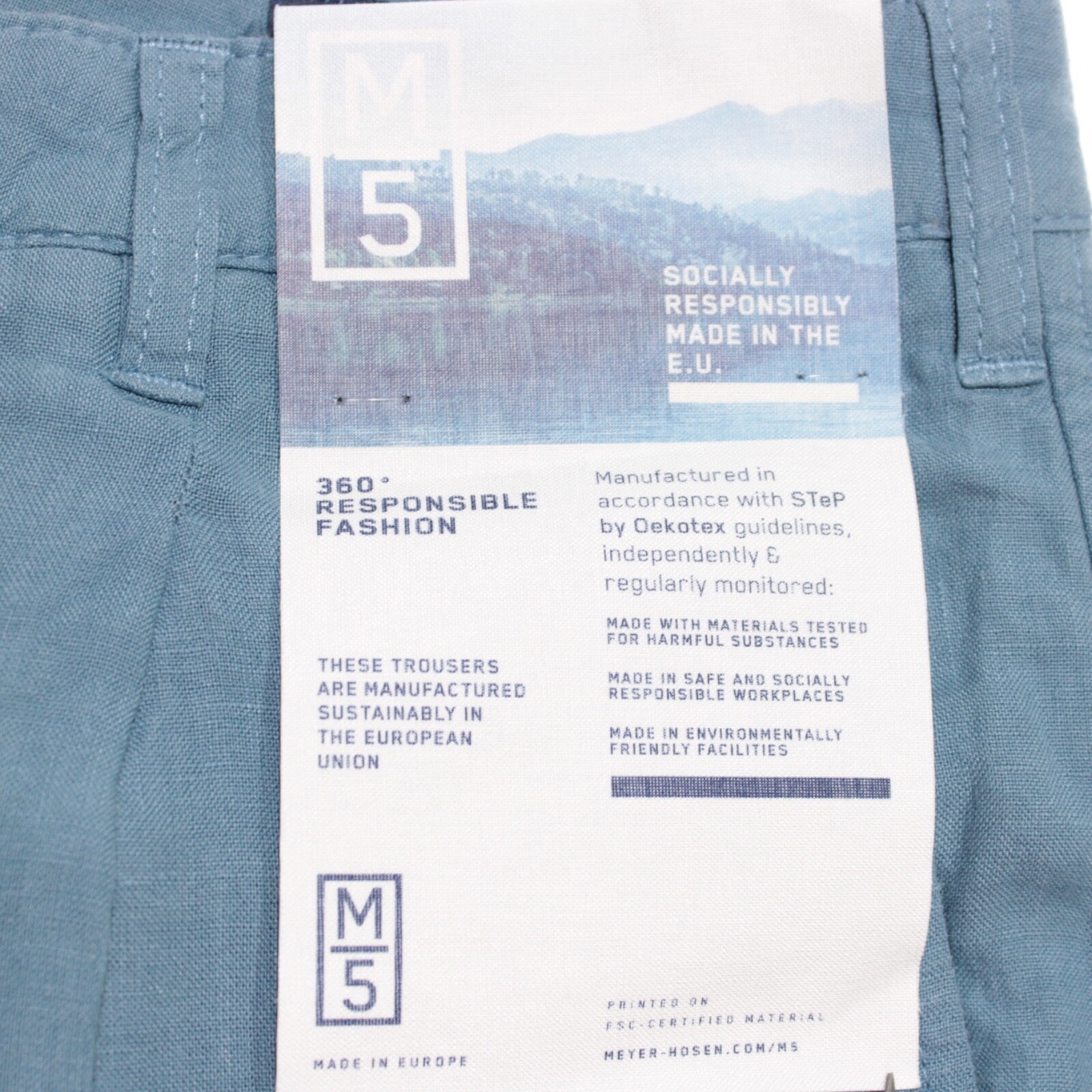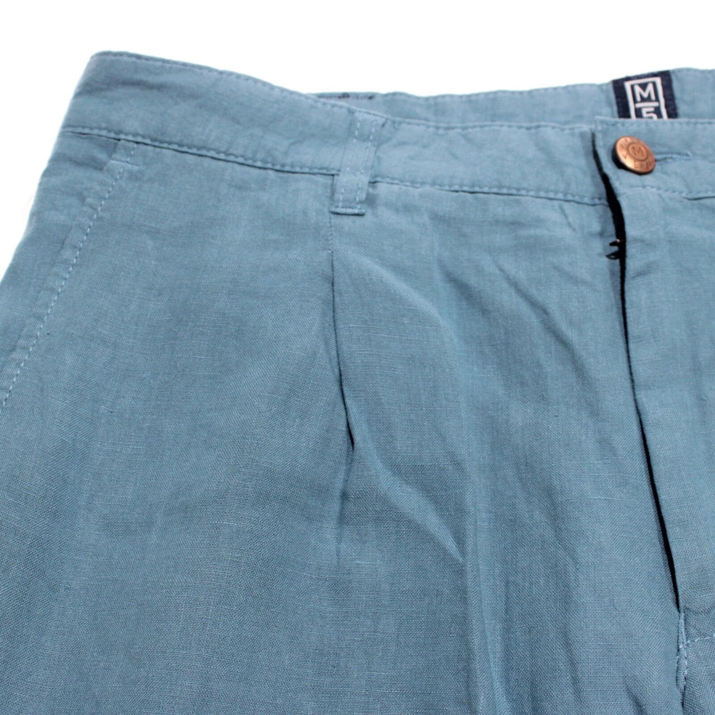 Meyer M5 NWT Chinos / Casual Pants Size 50 34 US Pleat In Solid Blue 100% Linen