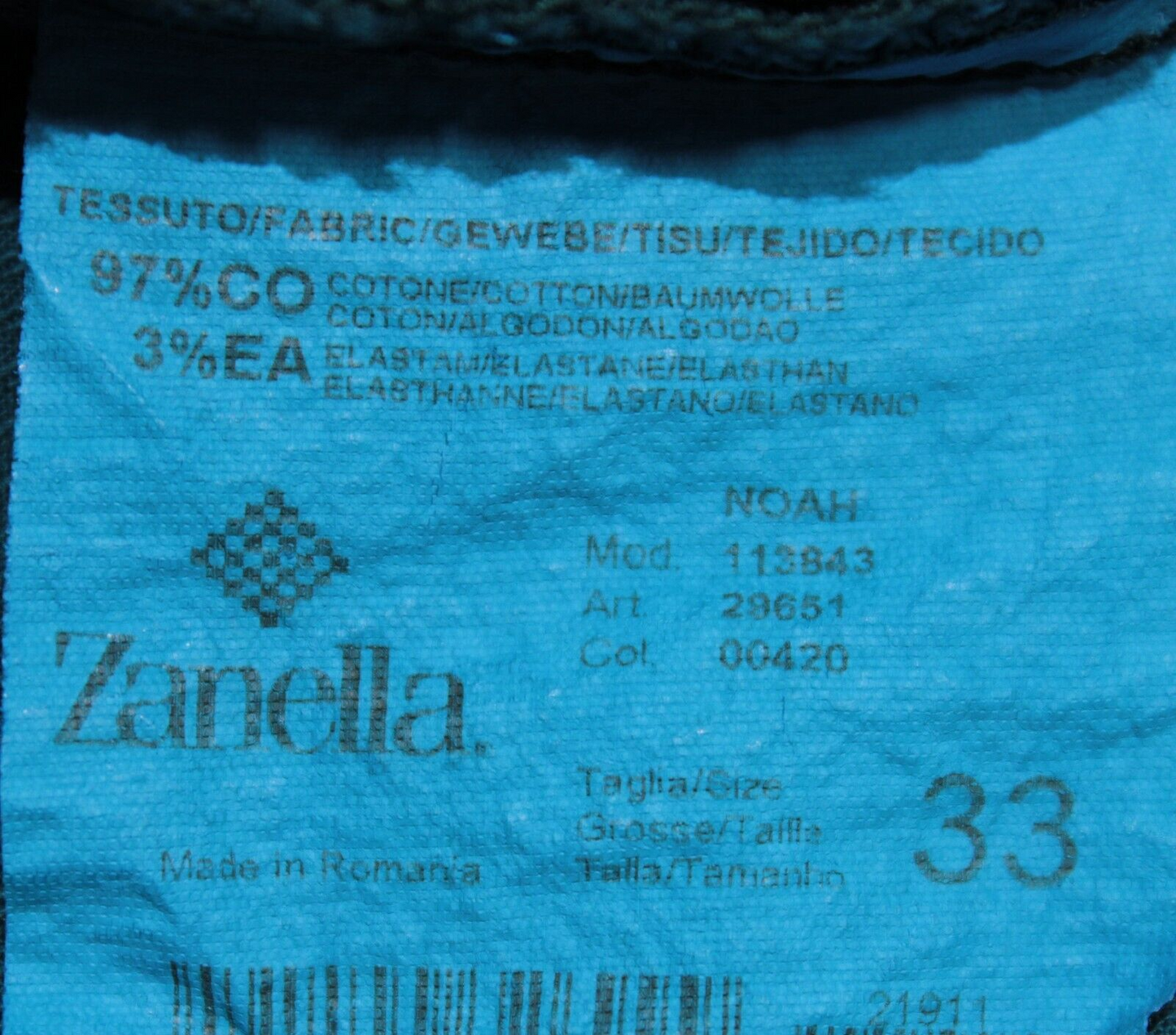 Zanella NWT Chinos / Casual Pants Size 33 US Noah In Solid Blue Cotton Blend