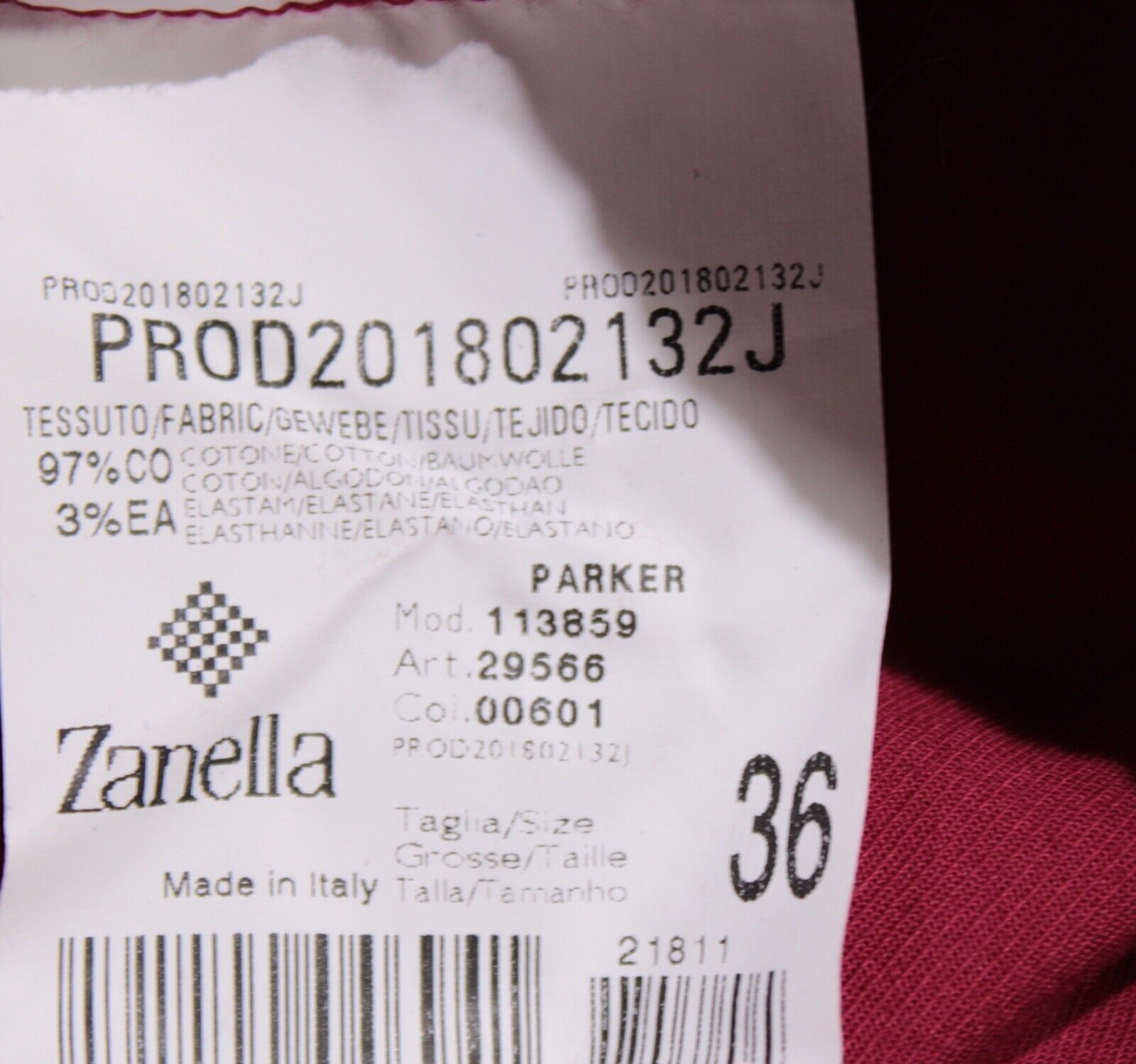 Zanella NWT Chinos / Casual Pants Size 36 (38 US) Parker In Red Cotton Blend