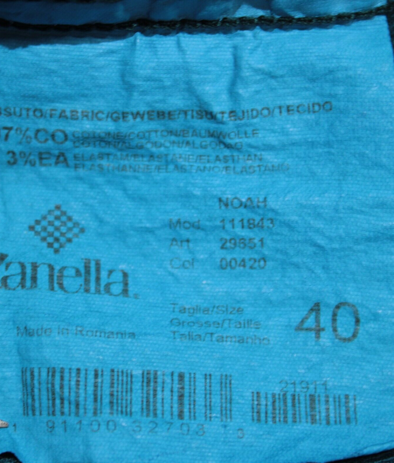 Zanella NWT Chinos / Casual Pants Size 40 US Noah In Solid Blue Cotton Blend