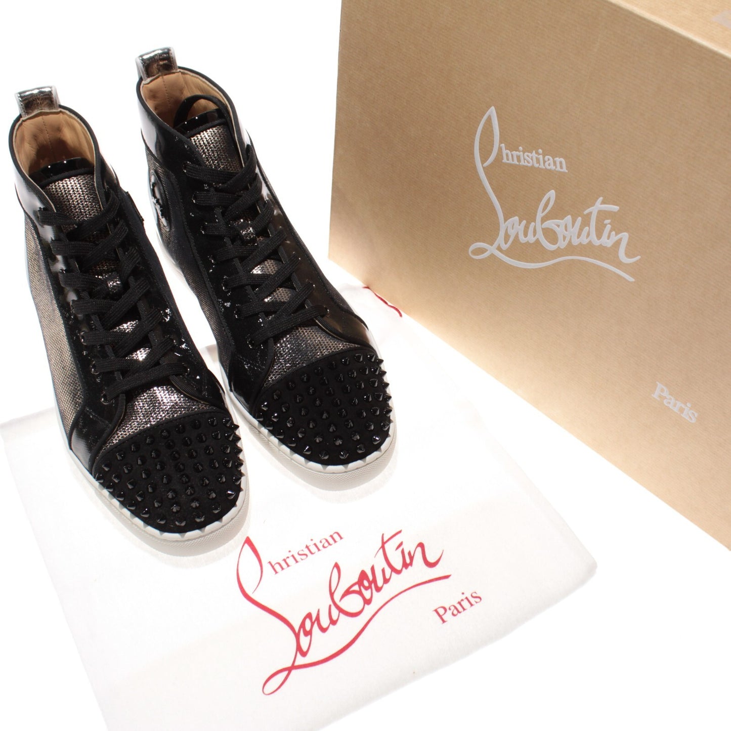 Christian Louboutin NWB Sneakers Lou Spikes Orlato 43.5 US 10.5 Black/Metallic
