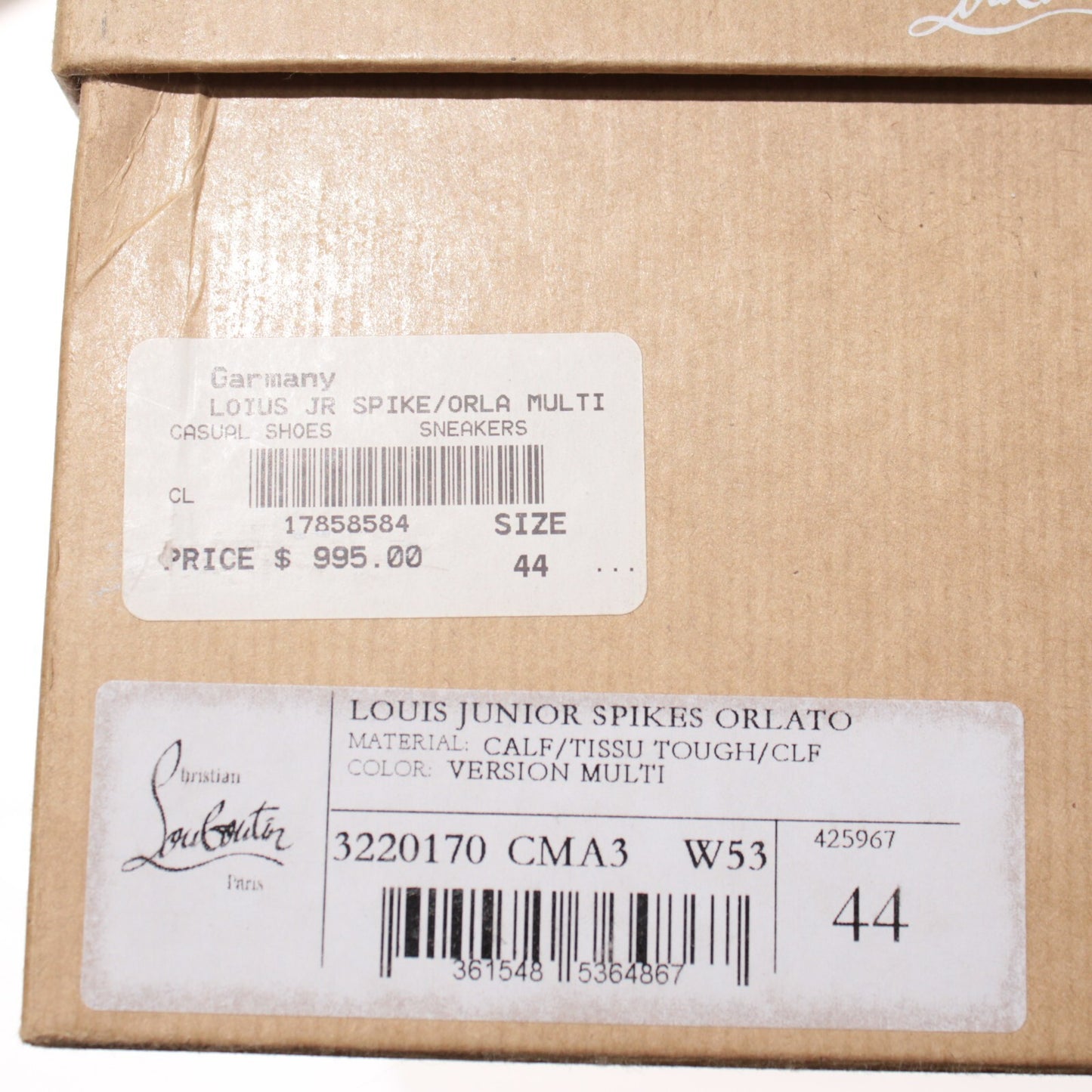 Christian Louboutin NWB Sneakers Louis Junior Spikes Orlato 44 US 11 Blue/Multi
