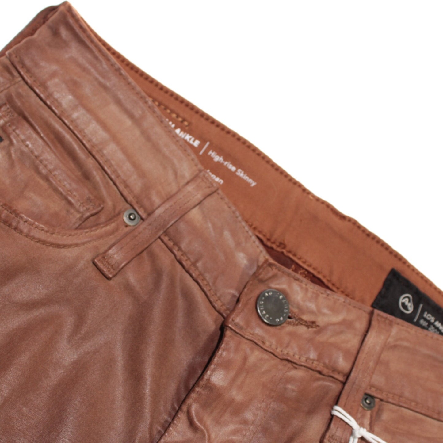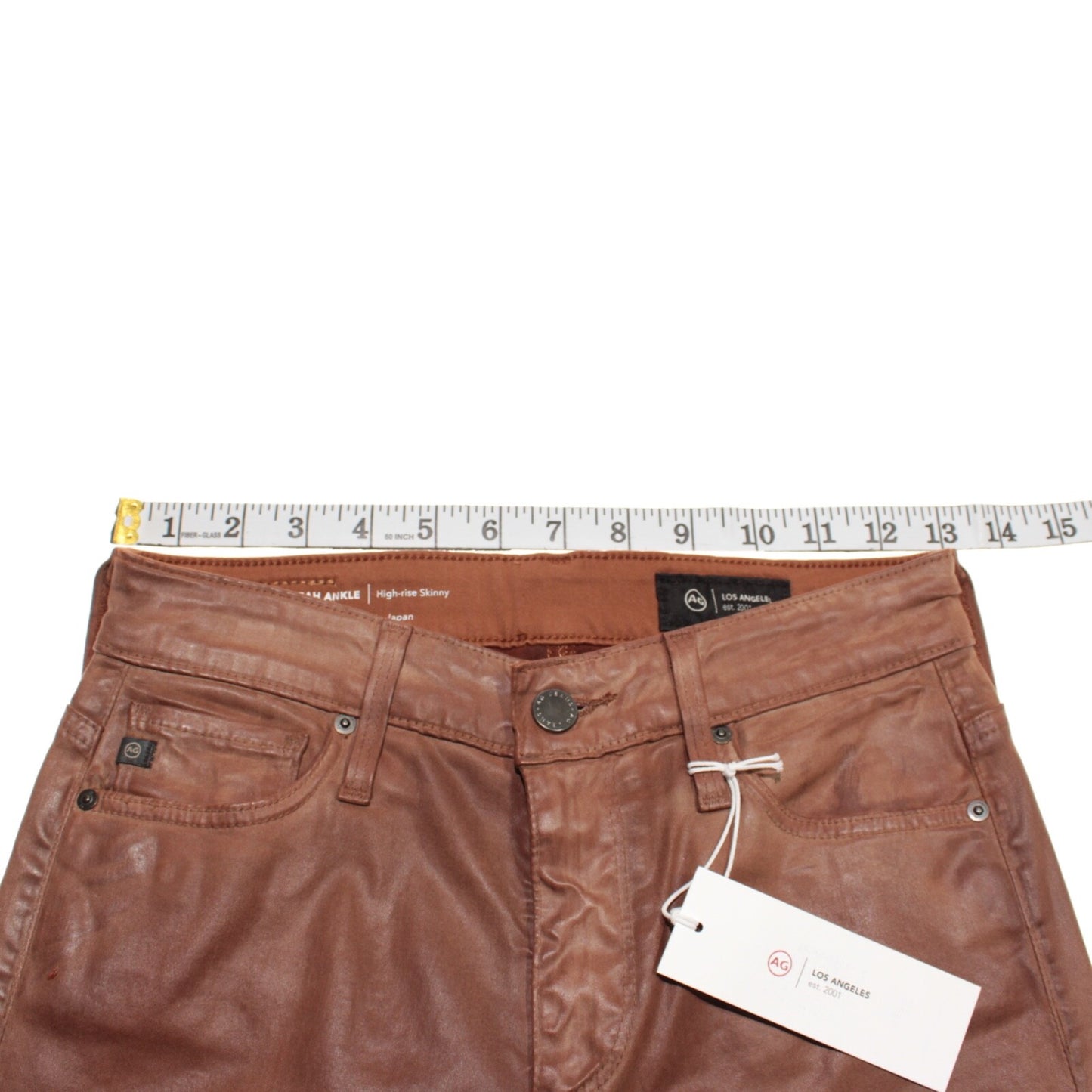 AG NWT Farrah Ankle High Rise Coated Skinny Jeans Size 25 US In Solid Brown