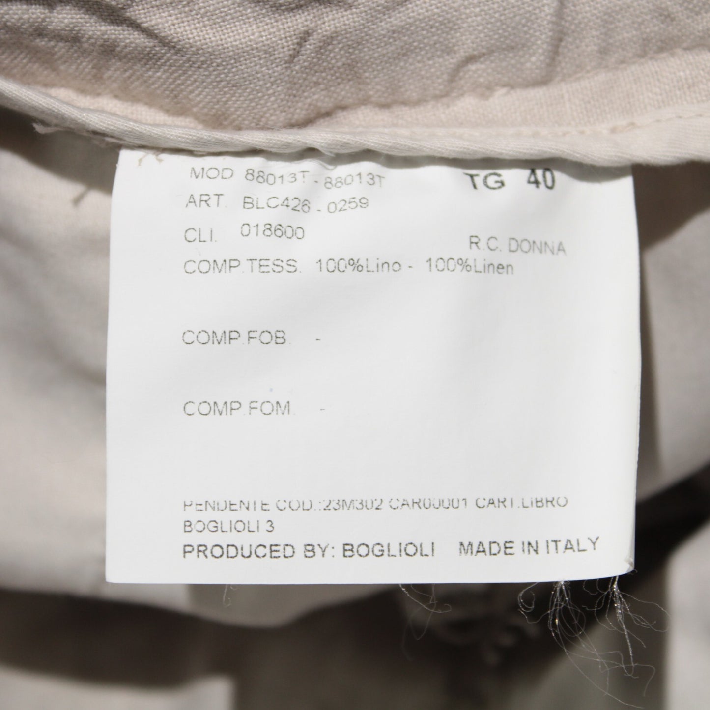 Boglioli NWT Pants Size 40 US 4 in Light Grayish Beige 100% Linen Made in Italy
