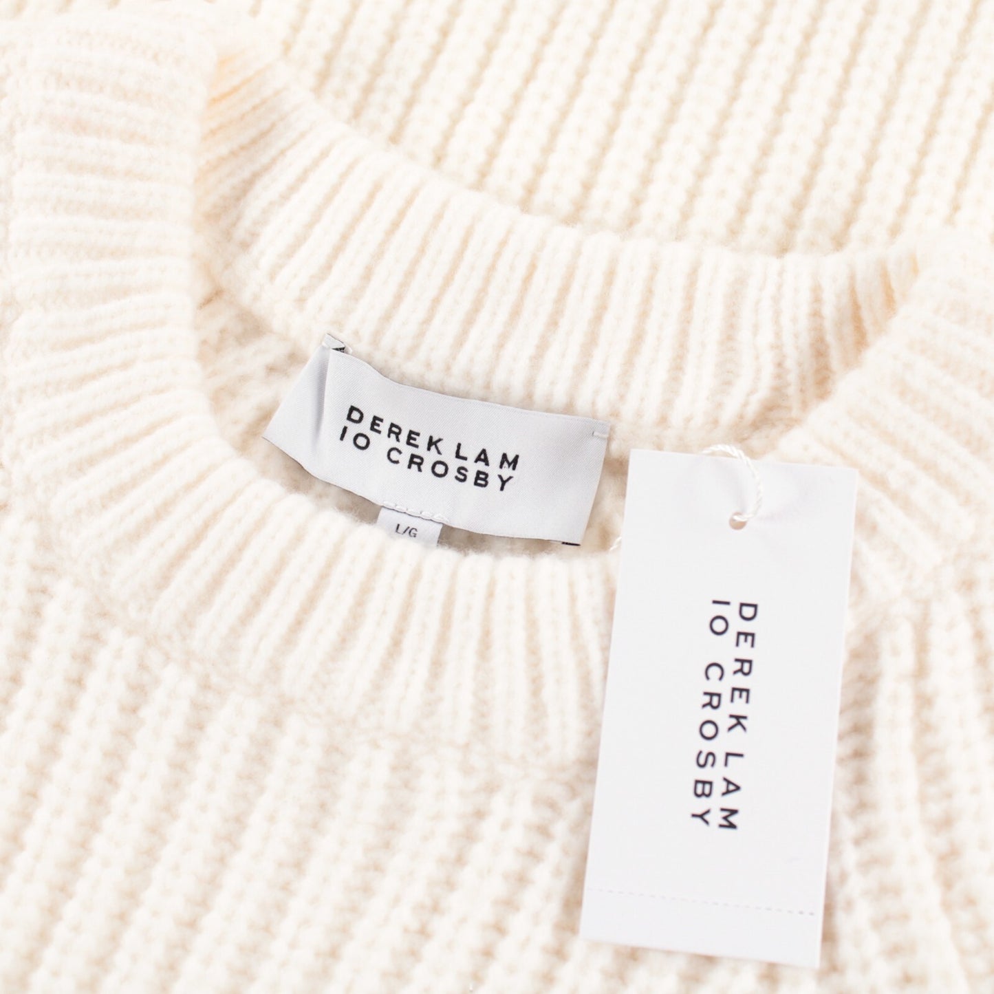 Derek Lam 10 Crosby NWT Knitted Wool Blend Crew Neck Sweater Size L in Ivory