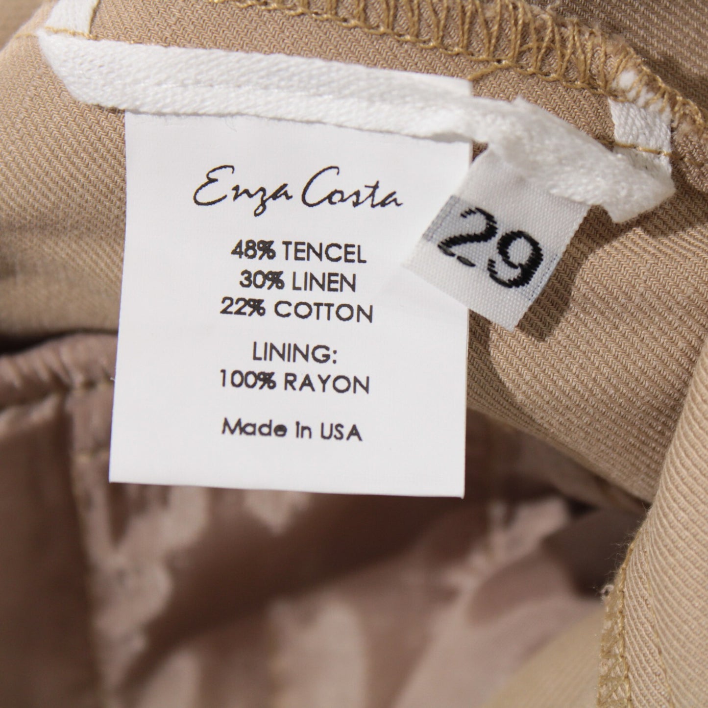 Enza Costa NWOT Flat Front Casual Chino Pants Size 29 in Solid Tan Cotton Blend