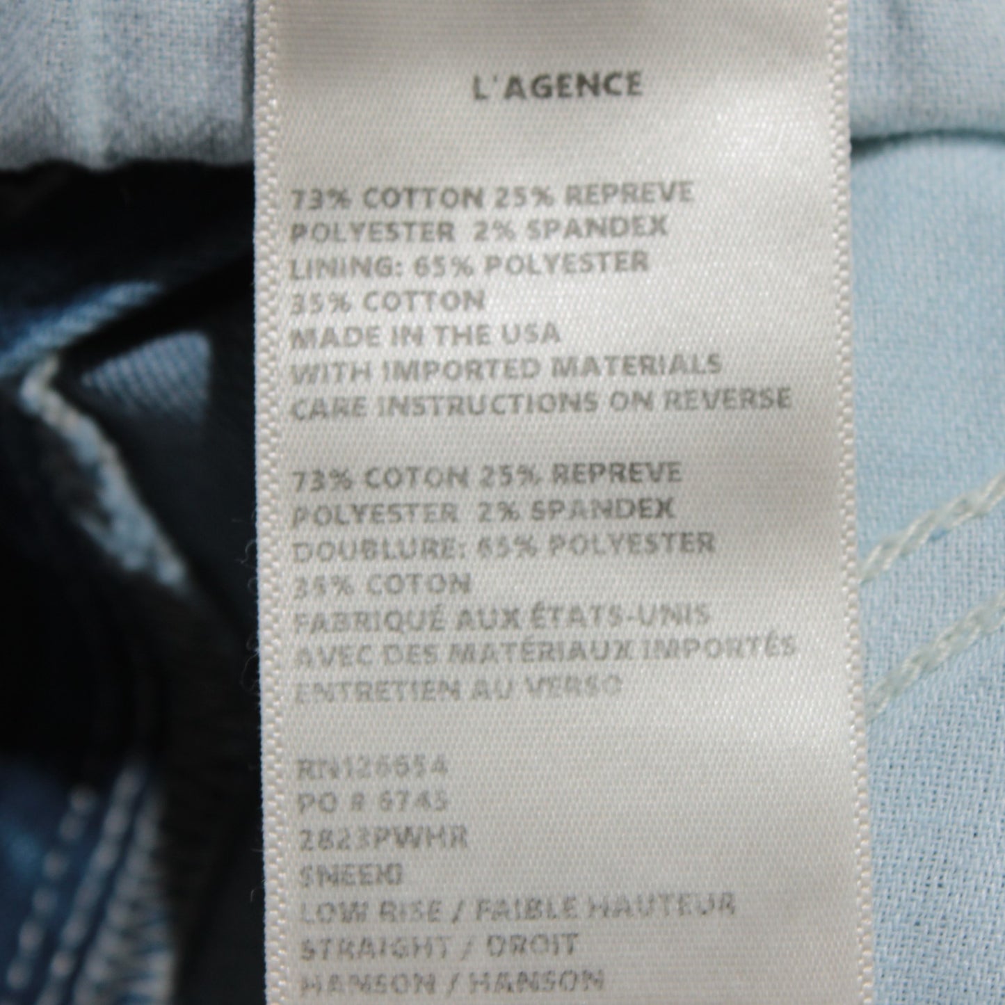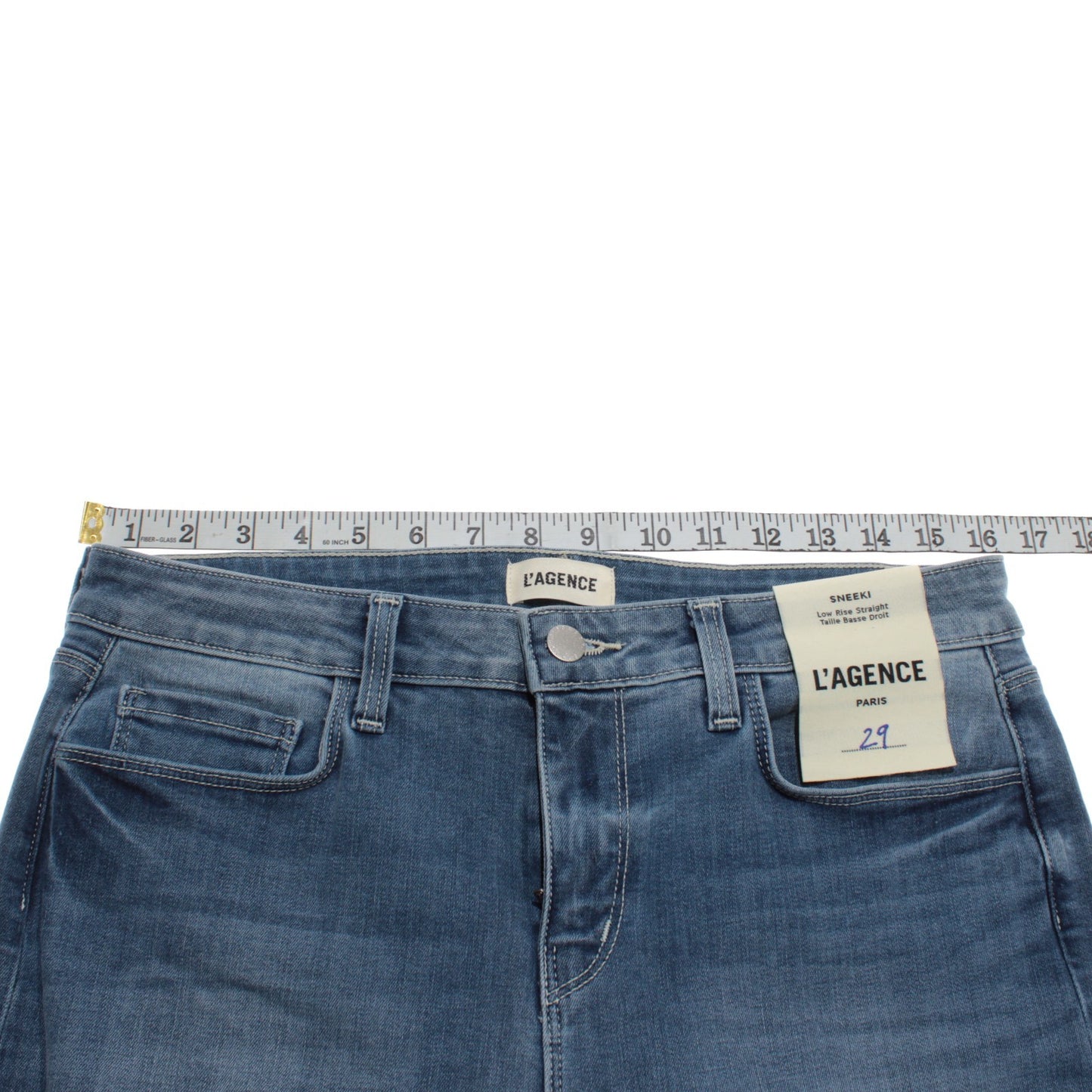 L'agence NWT Denim Jeans Sz 29 US Sneeki Low Rise Straight in Blue Cotton Blend