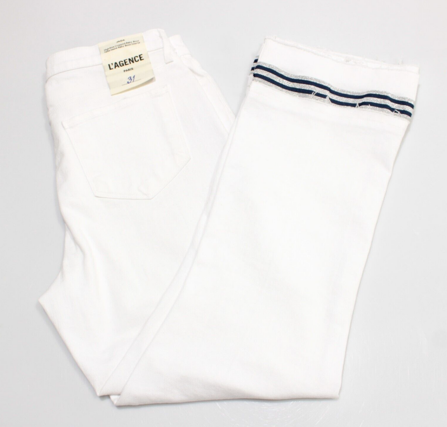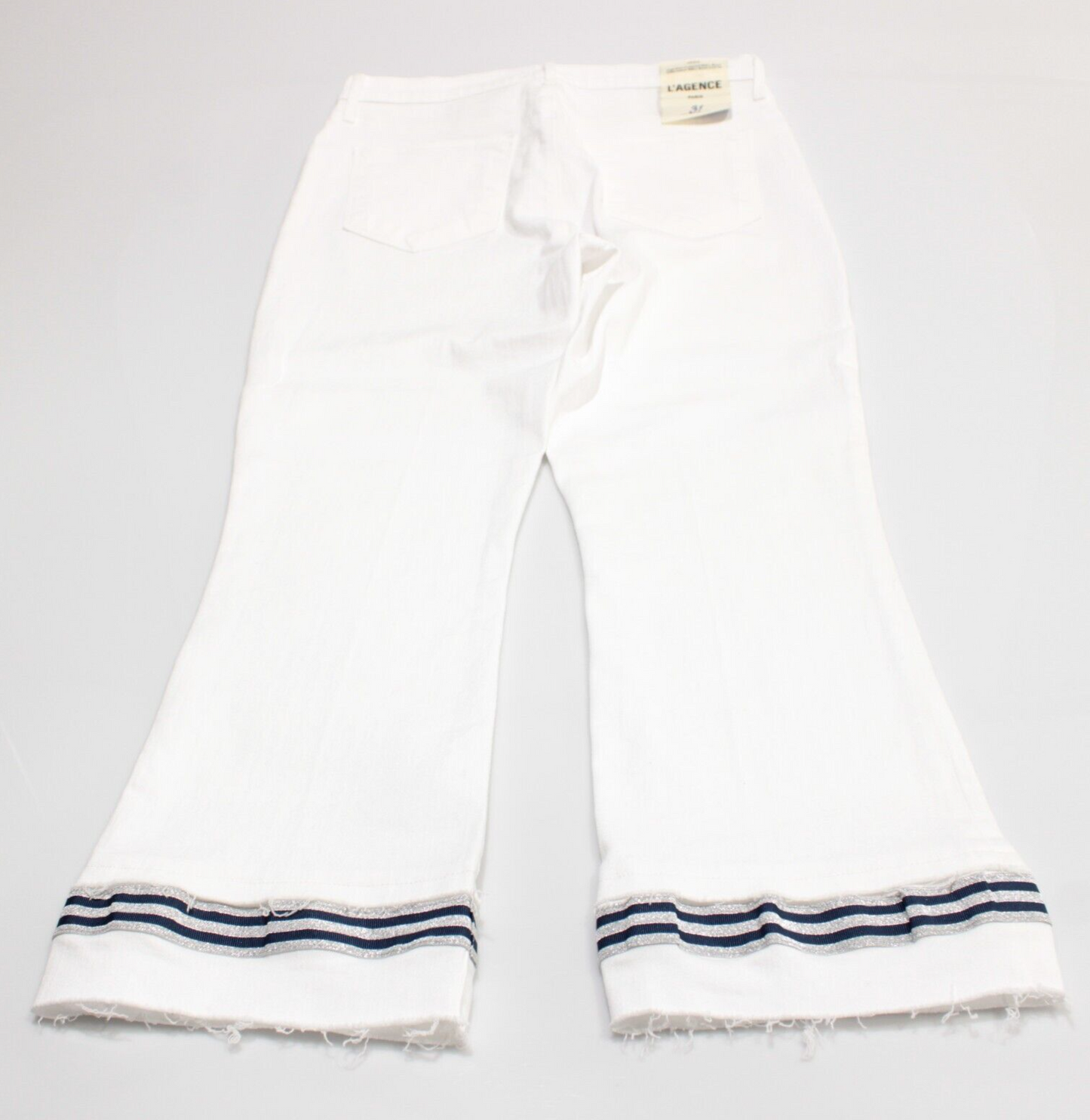 L'agence NWT Jada High Rise Cropped Baby Boot Jeans Size 31 White w/ Blue/Silver