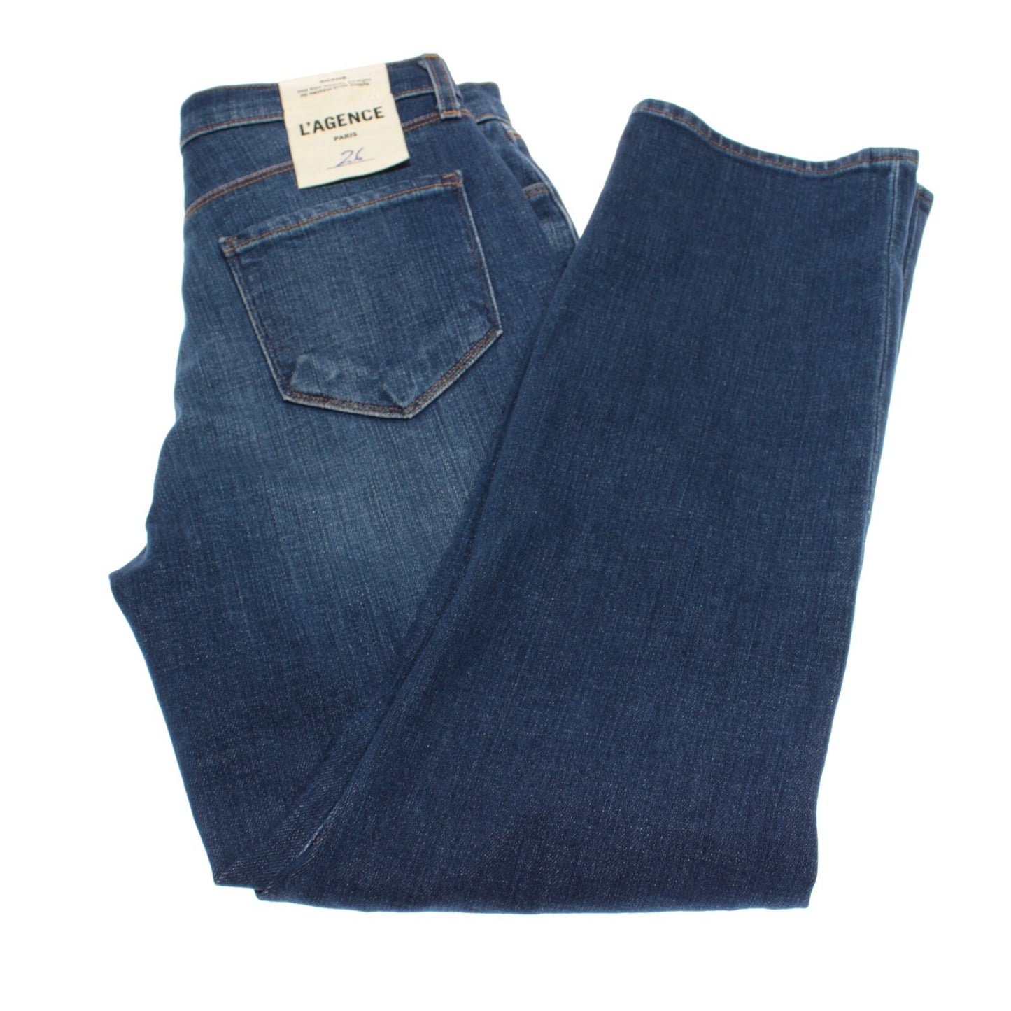 L'Agence NWT Jeans Size 26 US Ultra High Rise Skinny Solid Blue Cotton Blend