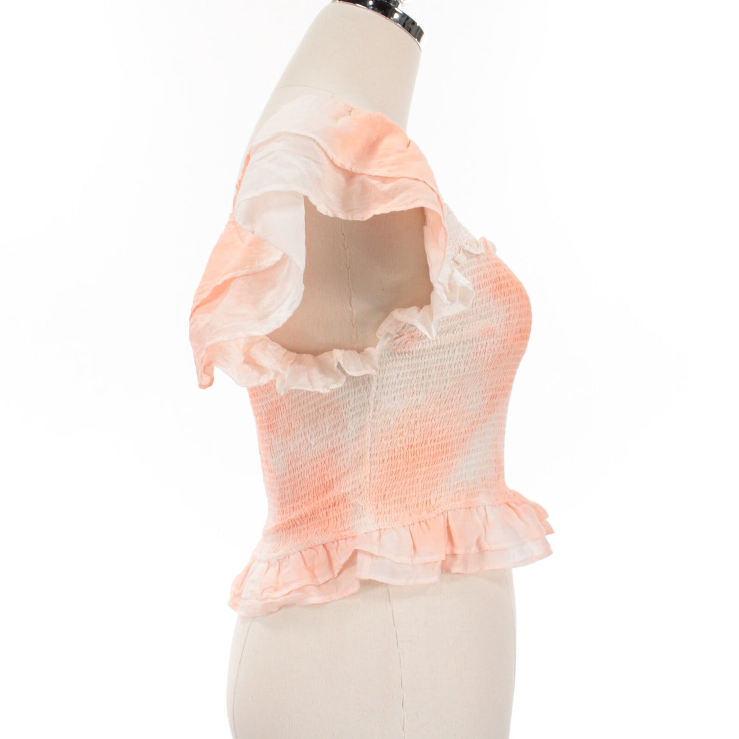 LoveShackFancy NWT Wrennly Smocked Ruffle Top Size S in Peach Dye Cotton/Silk