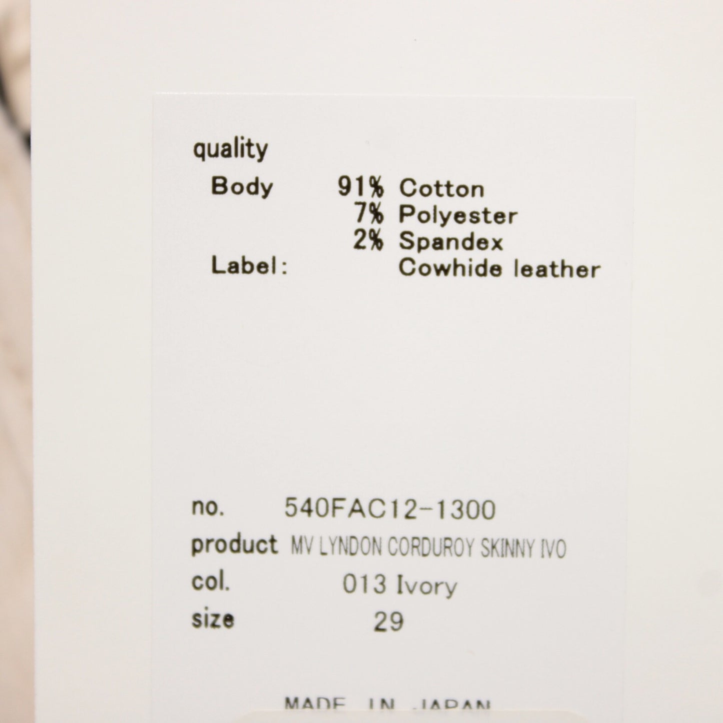 Moussy NWT Corduroy Skinny Jeans Size 29 US Lyndon In Ivory Cotton Blend