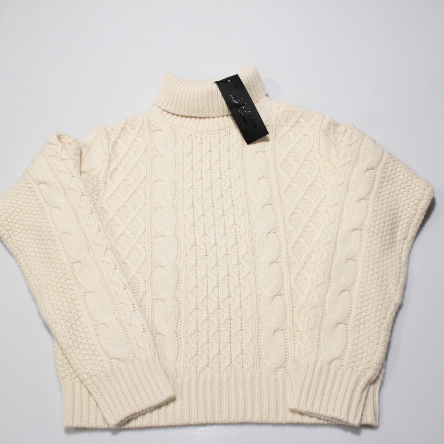 Nili Lotan NWT Andrina Turtleneck Cable Knit Sweater Size L Ivory Wool/Cashmere